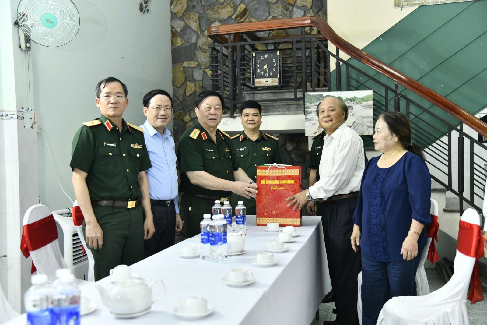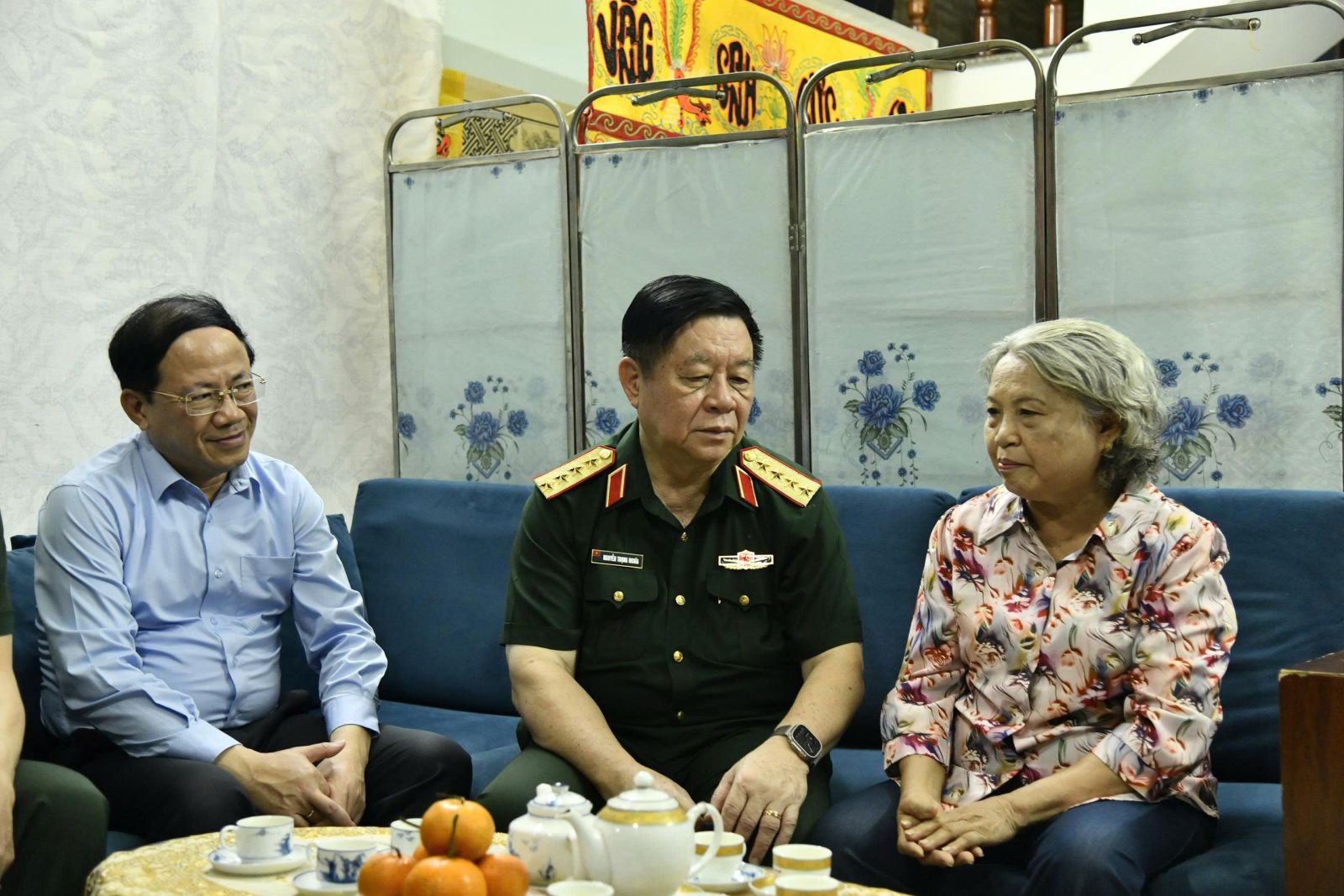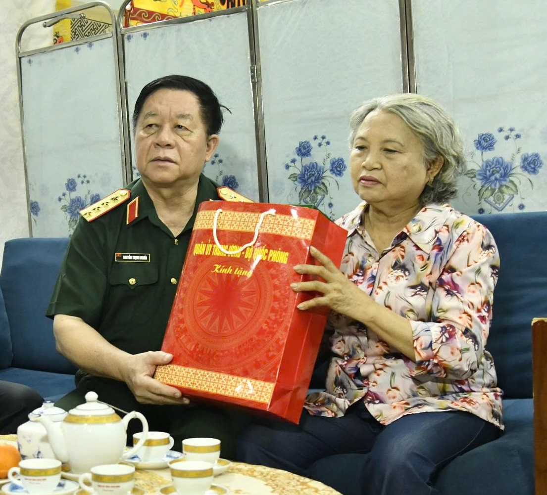 Đại tướng Nguyễn Trọng Nghĩa ân cần thăm hỏi sức khỏe bà Lê Thị Minh Tâm