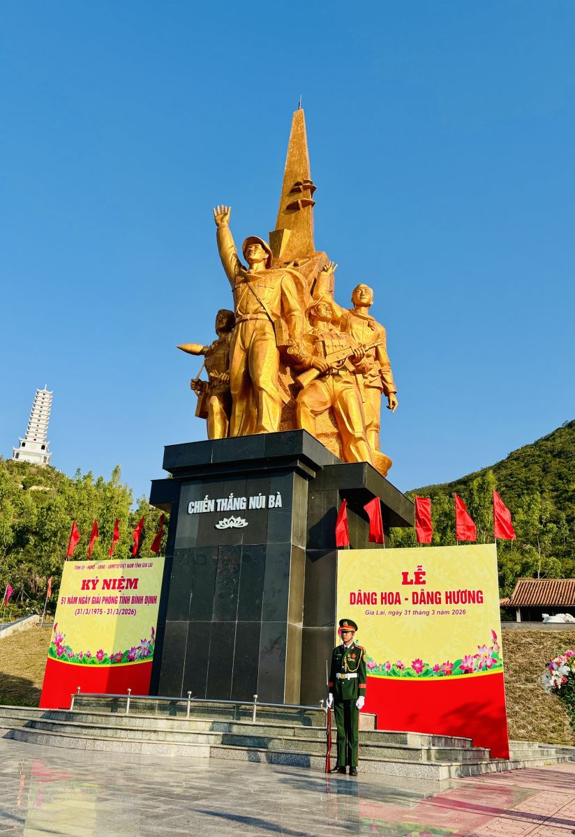 Trong không khí trang nghiêm và thành kính, các đại biểu đã kính cẩn dâng hoa trước Tượng đài chiến thắng Núi Bà và thắp những nén hương tại Nhà tưởng niệm, bày tỏ sự biết ơn sâu sắc trước những hy sinh to lớn của các anh hùng liệt sĩ.