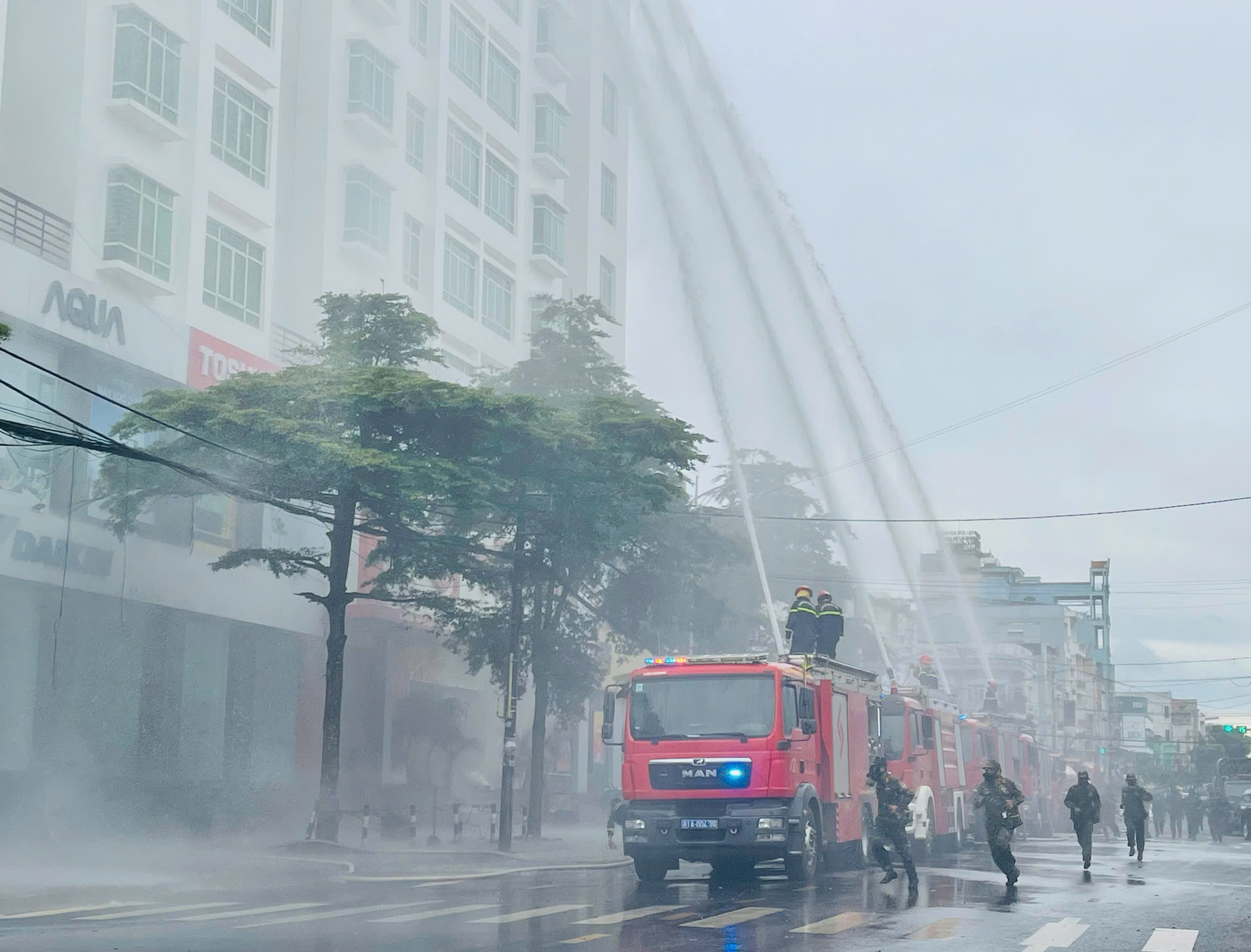 Các lực lượng tham gia diễn tập phương án chữa cháy và cứu nạn, cứu hộ