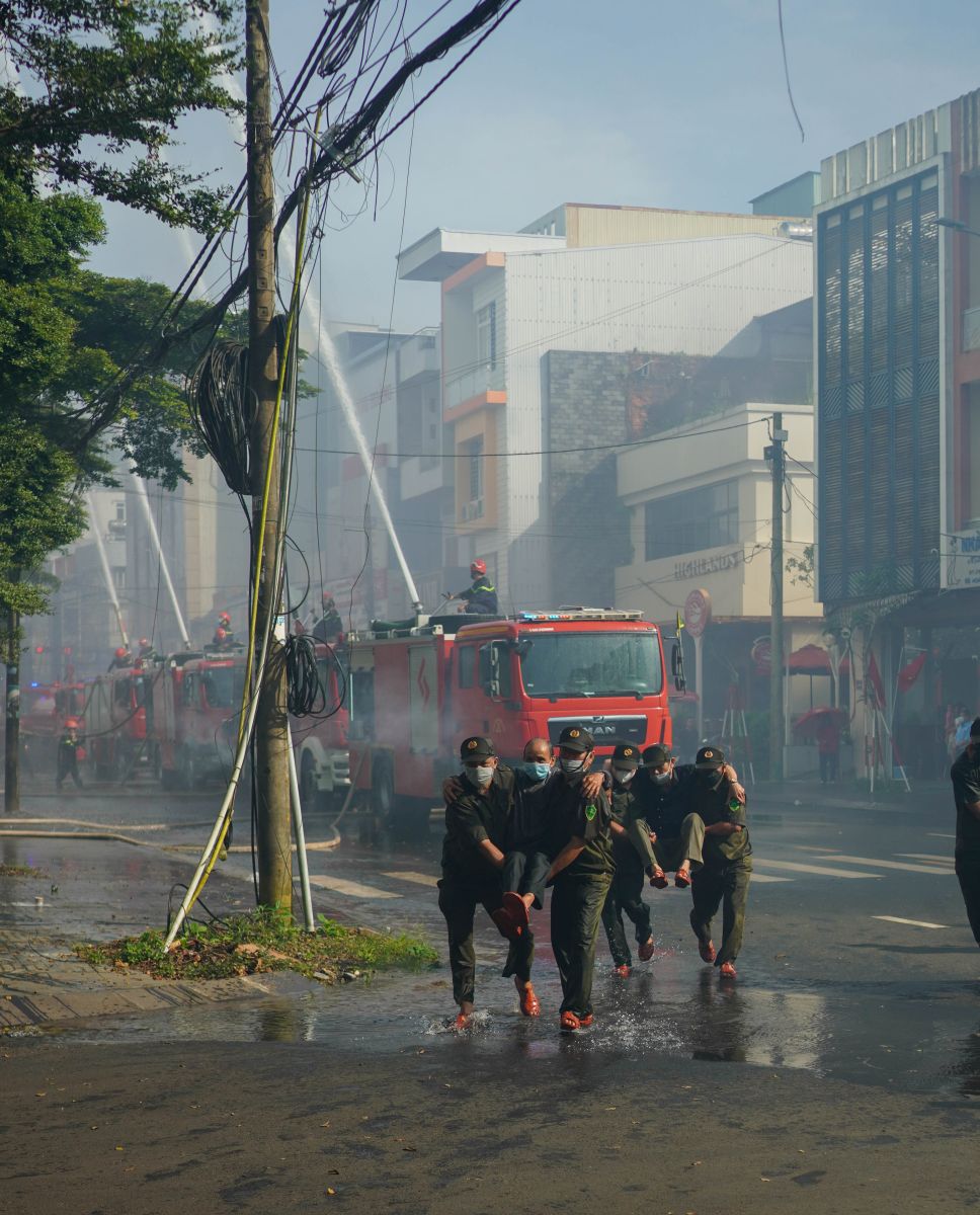 Lực lượng Cảnh sát chữa cháy đưa nạn nhân ra khu vực an toàn
