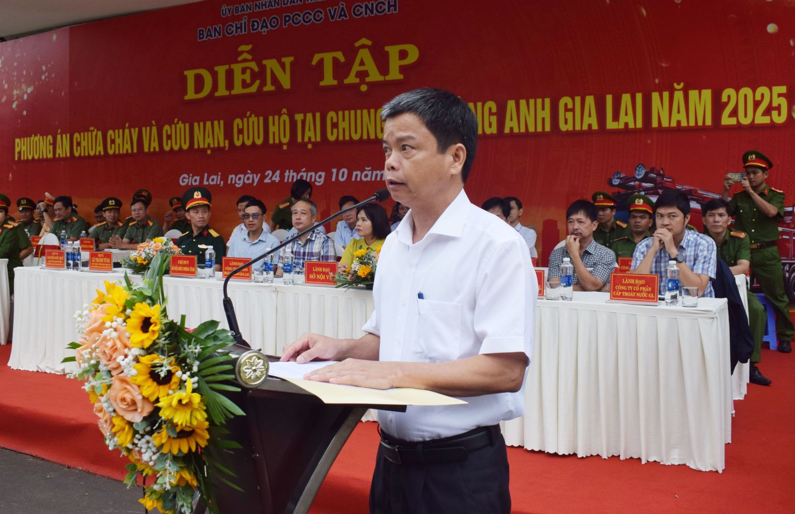Phát biểu tại buổi diễn tập, Phó Chủ tịch UBND tỉnh Nguyễn Hữu Quế nhấn mạnh: Diễn tập phương án chữa cháy và cứu nạn, cứu hộ có huy động nhiều lực lượng tham gia năm 2025 là sự kiện diễn tập lớn của tỉnh, có ý nghĩa quan trọng trên nhiều phương diện, thể hiện sức mạnh tổng hợp của cả hệ thống chính trị trong công tác lãnh đạo, chỉ đạo phòng cháy, chữa cháy và cứu nạn, cứu hộ của tỉnh. Đây cũng là dịp để đẩy mạnh công tác tuyên truyền, nâng cao nhận thức, trách nhiệm của cấp ủy, chính quyền địa phương, của lực lượng chuyên trách PCCC và cứu nạn, cứu hộ, cũng như của các cơ quan, tổ chức, doanh nghiệp và người dân đối với công tác này. Đồng thời, đây là cơ hội để các cấp chính quyền và các lực lượng tại chỗ được rèn luyện cơ chế chỉ huy, điều hành, thực hành các thao tác chữa cháy và cứu nạn, cứu hộ.