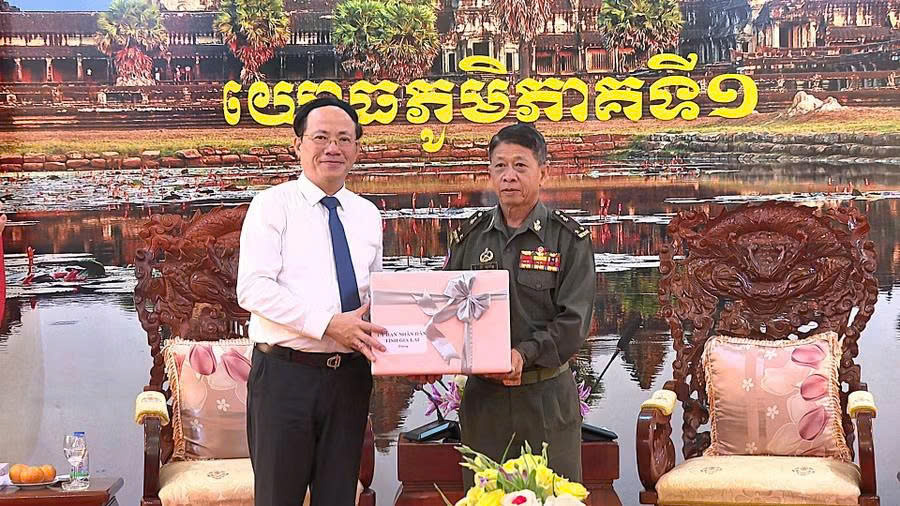 Tại Bộ Tư lệnh Quân khu I (Quân đội Hoàng gia Campuchia), Chủ tịch UBND tỉnh Phạm Anh Tuấn đã thay mặt Đảng bộ, chính quyền và nhân dân tỉnh Gia Lai gửi lời chúc mừng năm mới sức khỏe, hạnh phúc và thành công đến lãnh đạo, cán bộ, chiến sĩ toàn đơn vị.