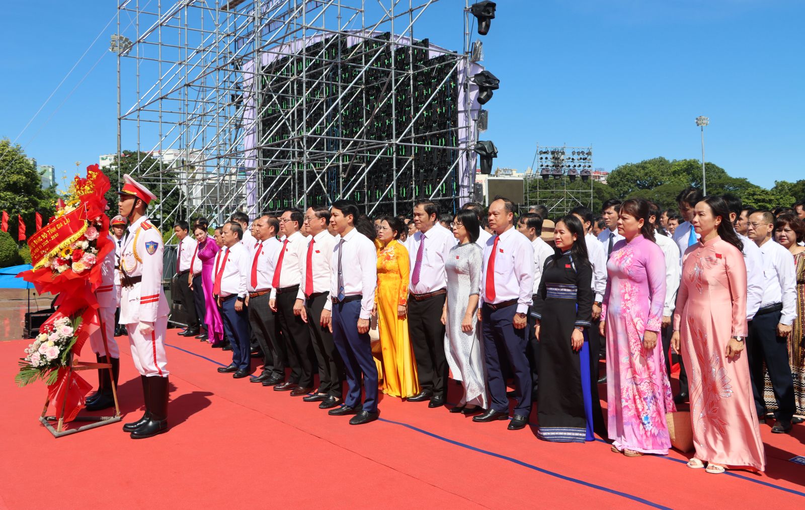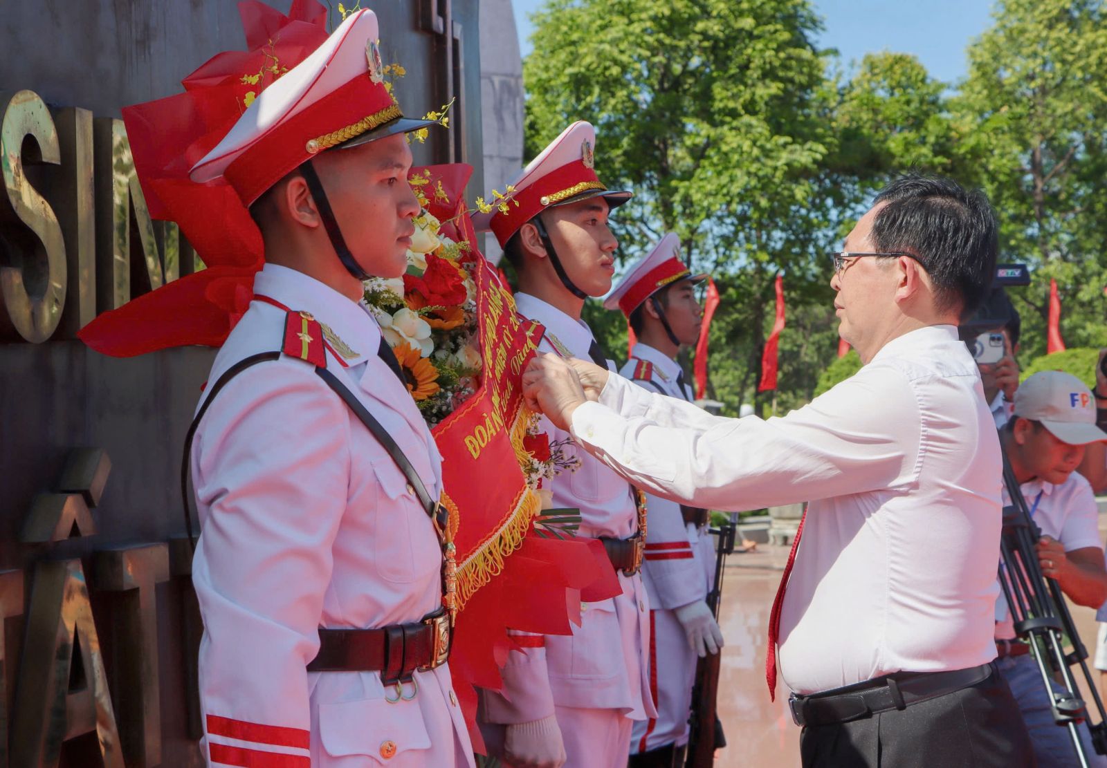 Đại biểu dâng hoa tại Tượng đài Nguyễn Sinh Sắc - Nguyễn Tất Thành.