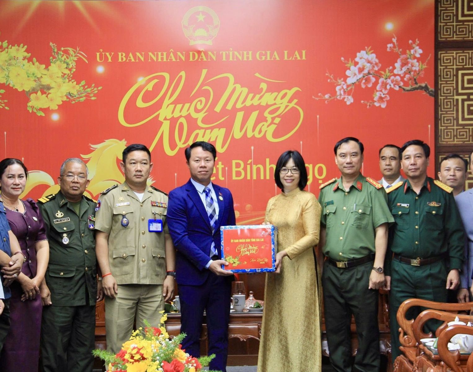 Phó Tỉnh trưởng tỉnh Stung Treng trao thư chức mừng năm mới cho UBND tỉnh Gia Lai