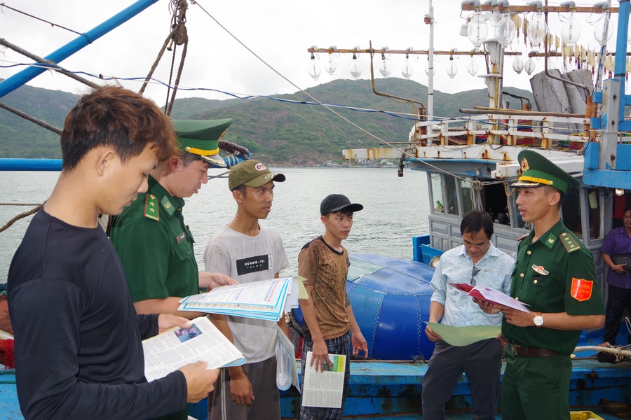 BĐBP tỉnh tuyên truyền pháp luật cho ngư dân. Ảnh: H.P
