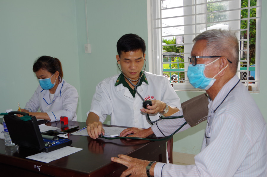 Bộ đội Biên phòng tỉnh khám bệnh, cấp thuốc miễn phí cho người dân ở khu vực biên giới. Ảnh: H.P