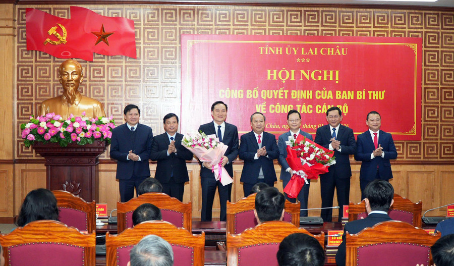 Cùng với đó là công bố Quyết định số 2643-QĐNS/TW ngày 5-1-2026 của Ban Chấp hành Trung ương Đảng chuẩn y đồng chí Nguyễn Ngọc Vinh - Ủy viên Ban Thường vụ Tỉnh ủy, Chủ nhiệm Ủy ban Kiểm tra Tỉnh ủy Lai Châu giữ chức Phó Bí thư Tỉnh ủy Lai Châu nhiệm kỳ 2025-2030.