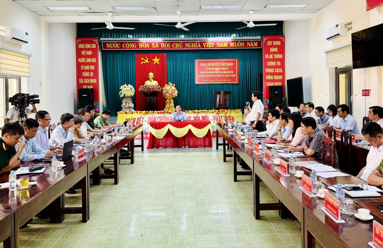 Lãnh đạo xã Phù Mỹ Tây báo cáo tại buổi làm việc