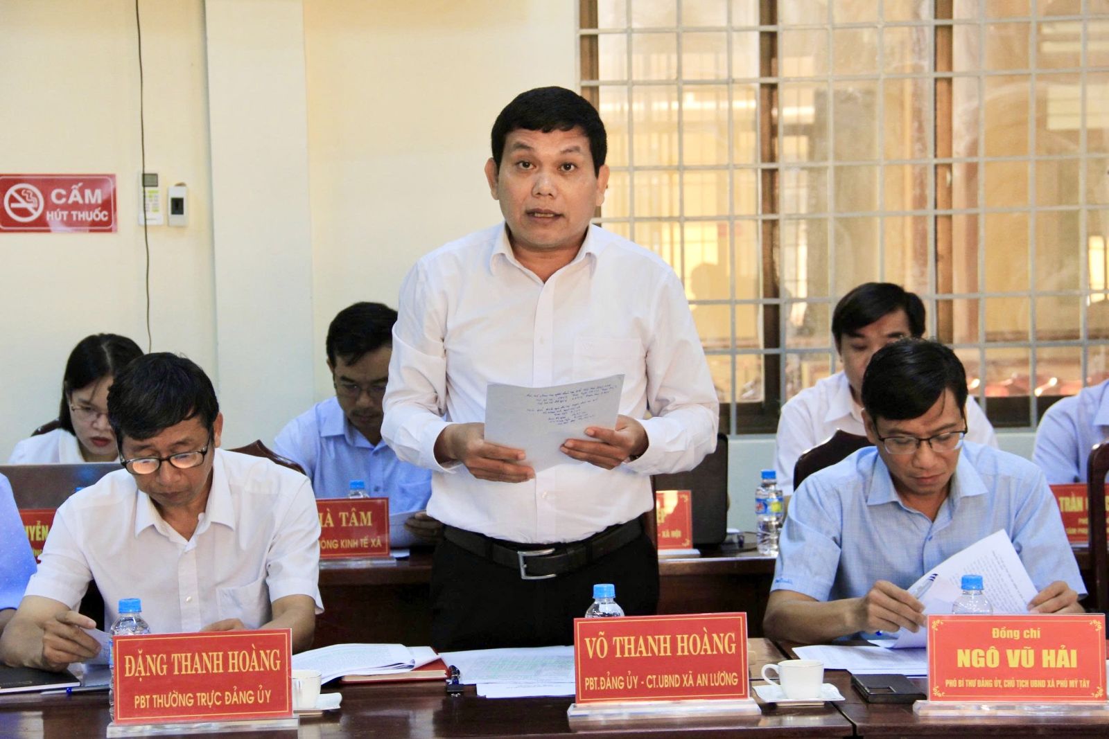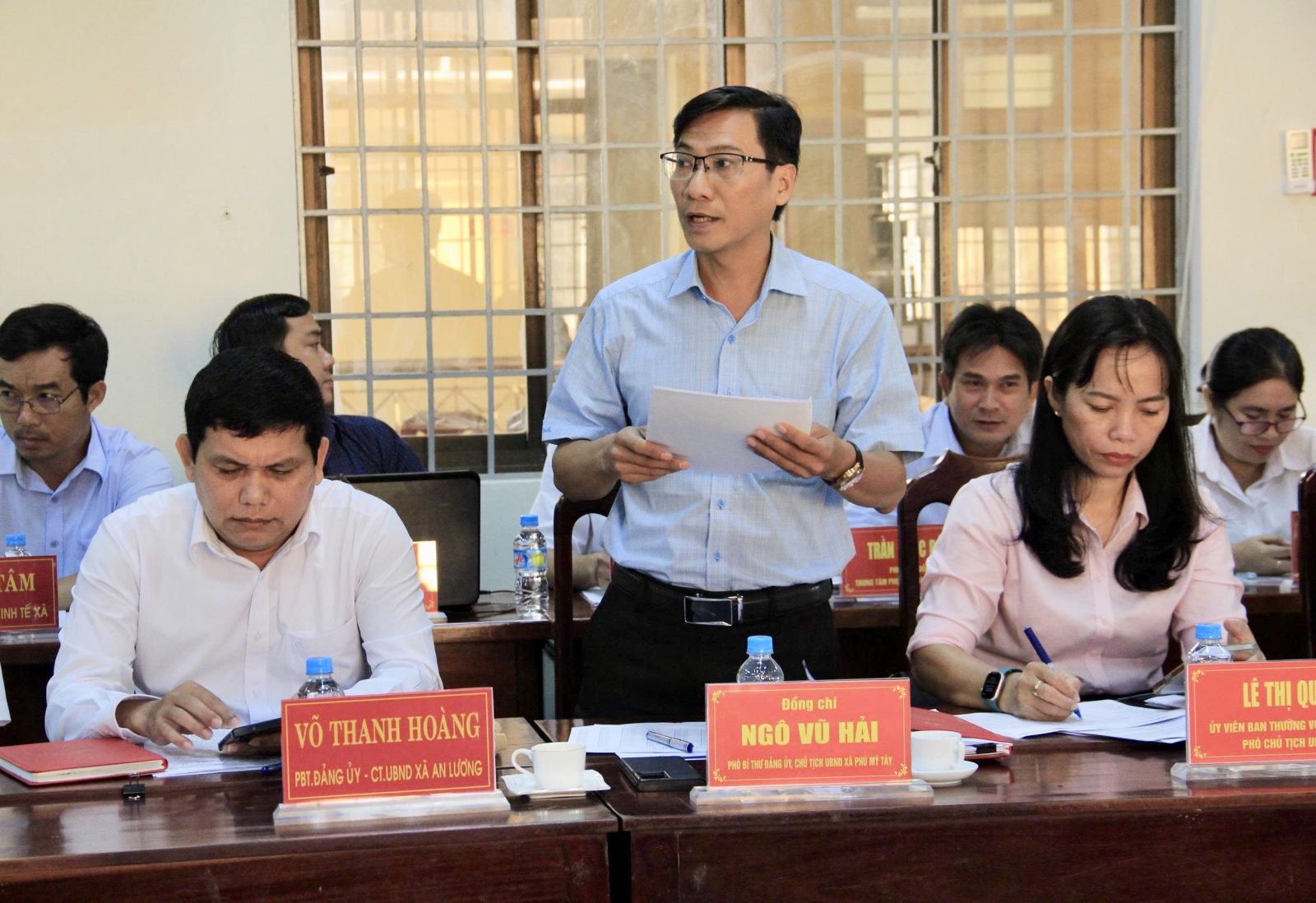 Lãnh đạo xã An Lương báo cáo tình hình hoạt động của xã sau sáp nhập