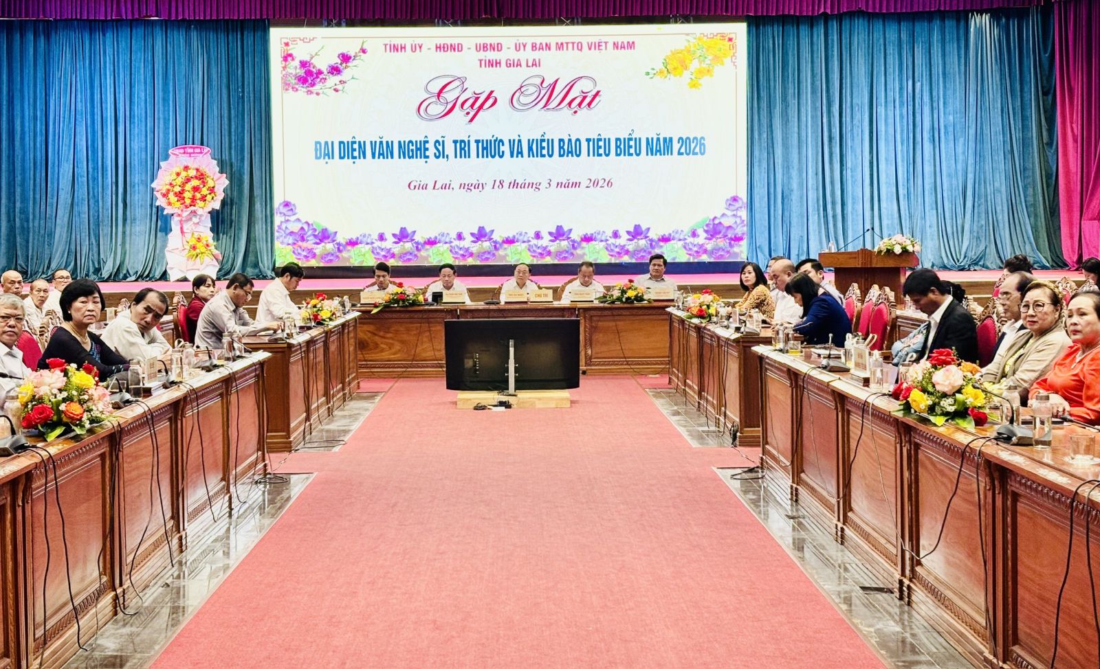 Cùng dự có các đồng chí Ủy viên Ban Thường vụ Tỉnh ủy, đại diện Thường trực HĐND, lãnh đạo UBND, Ban Thường trực Ủy ban MTTQ Việt Nam tỉnh và lãnh đạo các sở, ban, ngành, các tổ chức chính trị - xã hội tỉnh. Đặc biệt, buổi gặp mặt có sự tham dự của 117 văn nghệ sĩ, trí thức và kiều bào tiêu biểu trên địa bàn tỉnh Gia Lai.