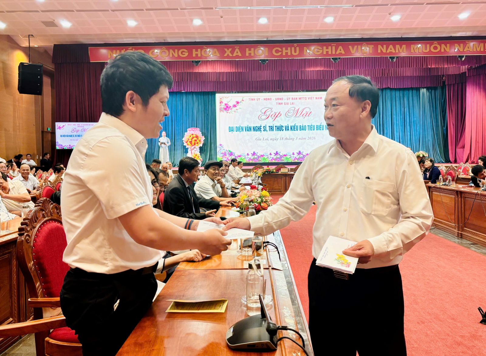 Nhân dịp này, Tỉnh ủy, HĐND, UBND tỉnh, Ủy ban MTTQ Việt Nam tỉnh Gia Lai đã tặng những phần quà ý nghĩa đến các đại biểu văn nghệ sĩ, trí thức và kiều bào tiêu biểu thay cho lời tri ân và cảm ơn chân thành nhất.