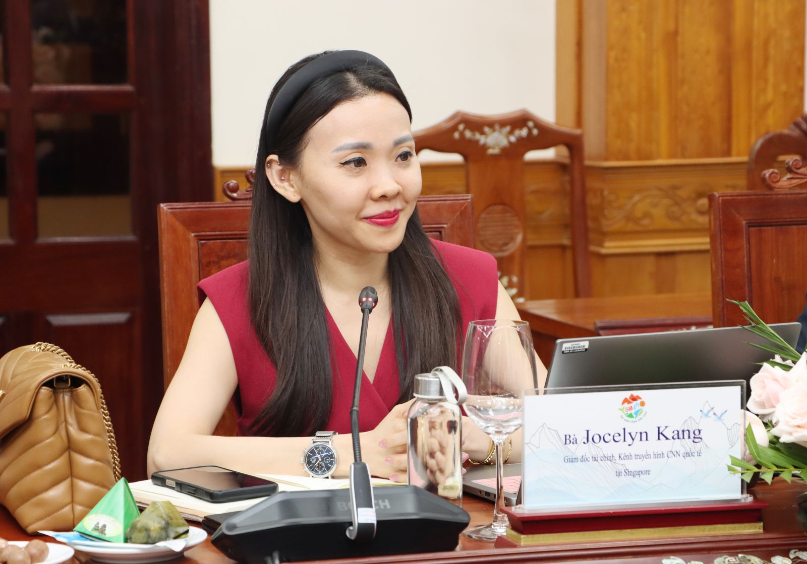 Bà Jocelyn Kang - Giám đốc tài chính Kênh truyền hình CNN quốc tế tại Singapore đánh giá cao tiềm năng, thế mạnh về du lịch của tỉnh Gia Lai.