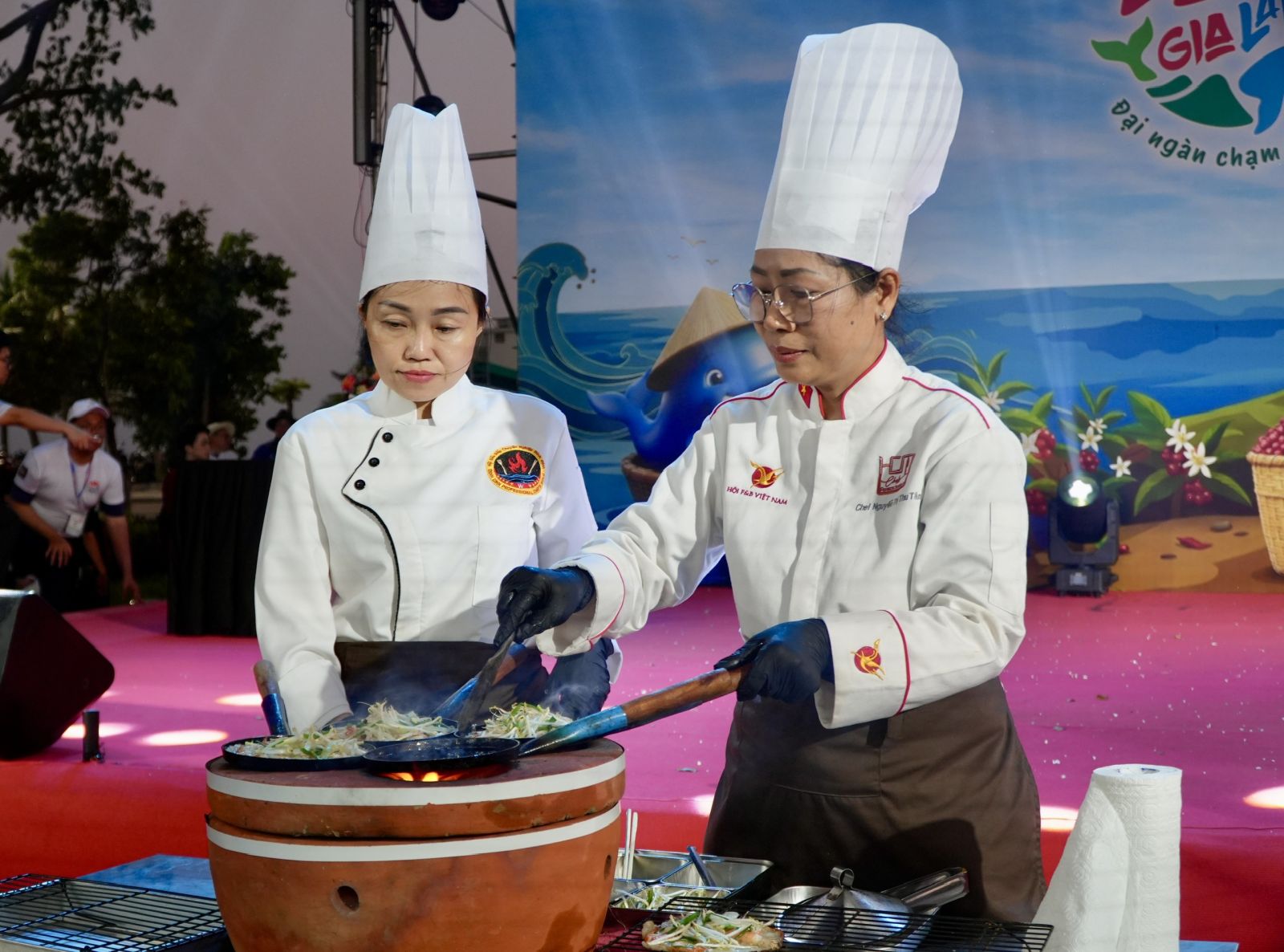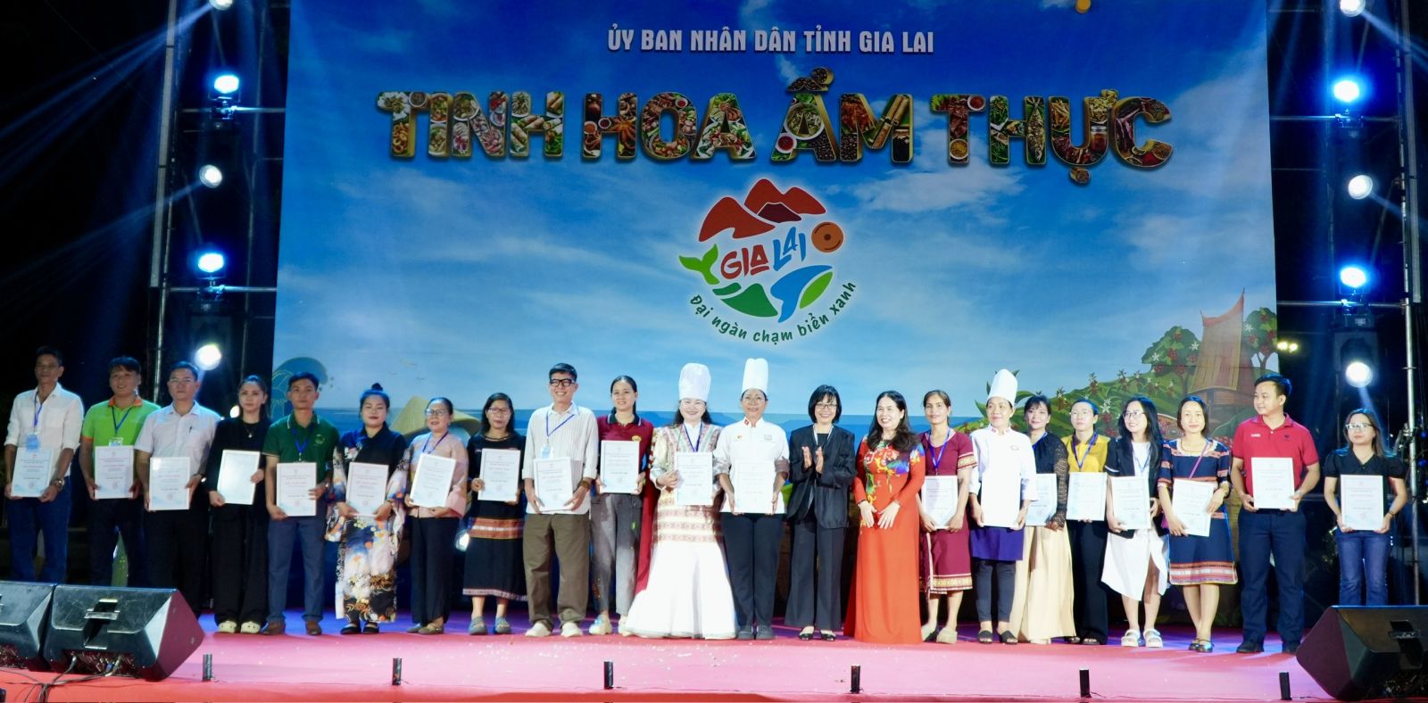 Điểm nhấn của chương trình là không gian quảng diễn ẩm thực đặc sắc, nơi các nghệ nhân, đầu bếp trực tiếp chế biến và trình diễn các món ăn tiêu biểu như cá ngừ đại dương, bánh xèo tôm nhảy, gà nướng cơm lam,… qua đó tái hiện sinh động câu chuyện văn hóa, lịch sử và đời sống của vùng đất Gia Lai.