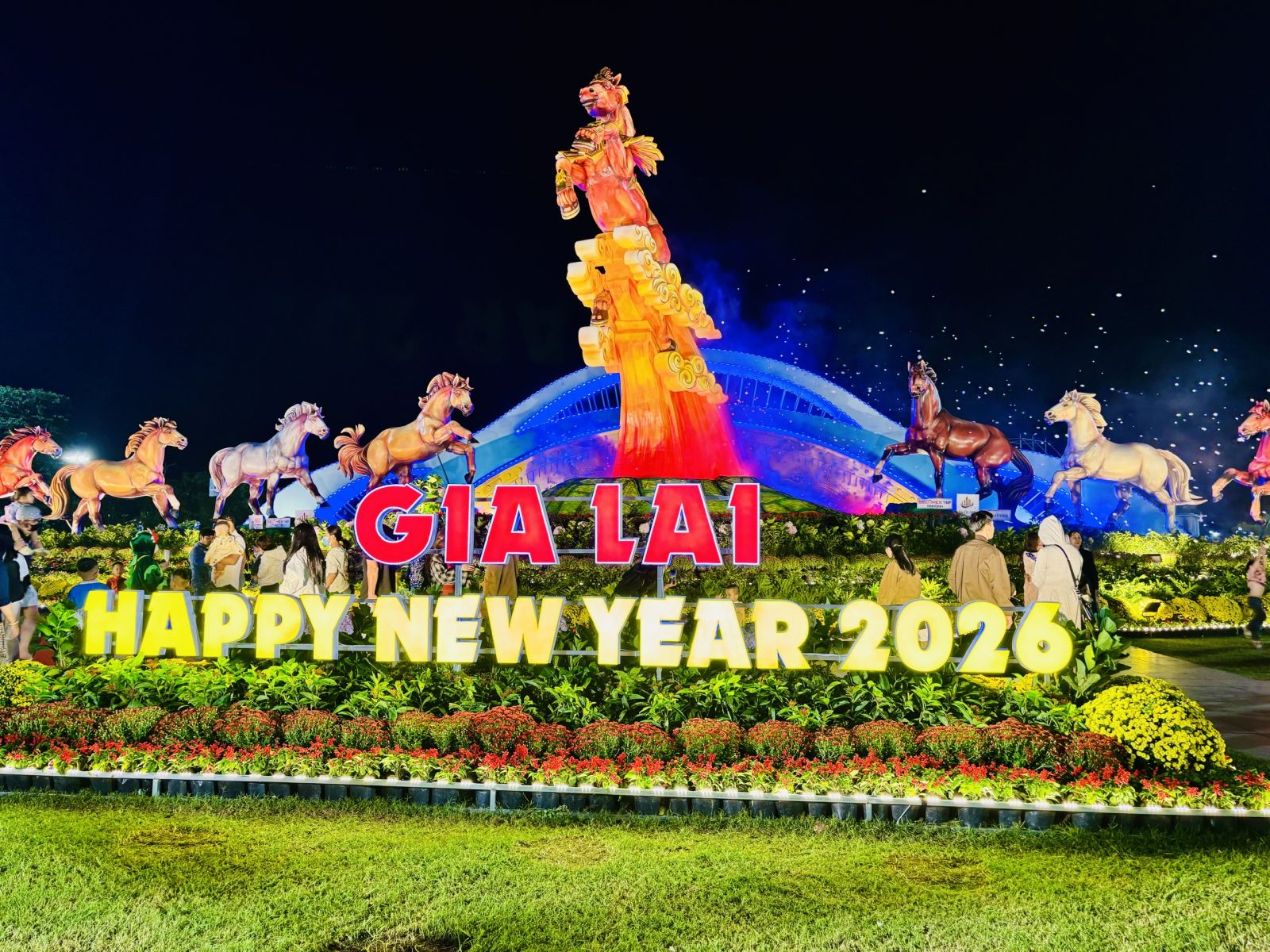 Cụm linh vật Xuân Bính Ngọ 2026 do Sở Văn hóa, Thể thao và Du lịch chủ trì, phối hợp với các sở, ngành, UBND phường Quy Nhơn và các nhà tài trợ tổ chức thực hiện. Công trình được thi công bởi Công ty TNHH Mỹ thuật Đức Nhân, là hoạt động văn hóa thường niên có ý nghĩa thiết thực, góp phần tạo không khí vui tươi, phấn khởi phục vụ nhân dân vui Xuân, đón Tết cổ truyền dân tộc, đồng thời tạo điểm nhấn thu hút du khách đến với Gia Lai trong dịp Tết Nguyên đán.