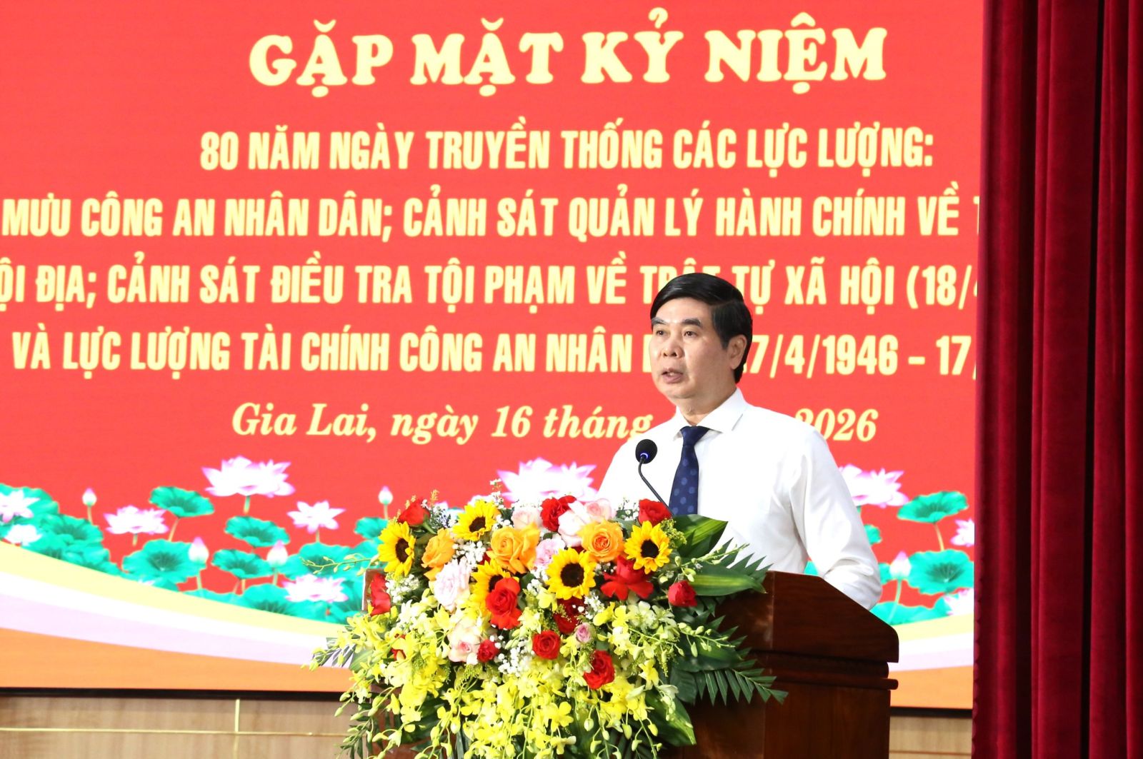 Phát biểu tại buổi lễ, đồng chí Lâm Hải Giang ghi nhận và biểu dương những thành tích, chiến công nổi bật mà lực lượng Công an tỉnh Gia Lai đã đạt được trong thời gian qua. Đồng chí nhấn mạnh, trong bối cảnh tình hình an ninh, trật tự còn tiềm ẩn nhiều yếu tố phức tạp, các lực lượng trong CAND cần tiếp tục phát huy truyền thống vẻ vang 80 năm; không ngừng nâng cao tinh thần trách nhiệm, tính chủ động và sáng tạo trong công tác.