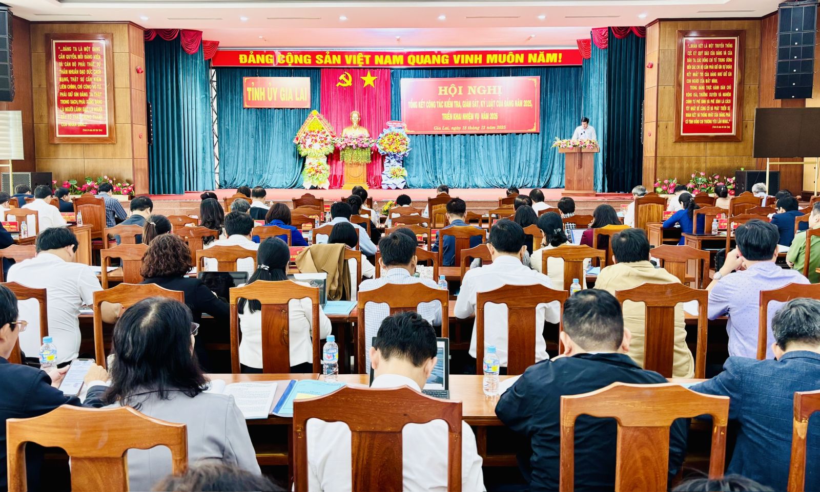 Phó Chủ nhiệm Ủy ban Kiểm tra Trung ương đề nghị Tỉnh ủy, Ban Thường vụ và Ủy ban Kiểm tra các cấp tỉnh Gia Lai tiếp tục bám sát, thực hiện nghiêm túc các chỉ đạo của Trung ương, đặc biệt là các ý kiến chỉ đạo của đồng chí Tổng Bí thư Tô Lâm tại Hội nghị toàn quốc tổng kết về công tác kiểm tra, giám sát vừa qua. Các cấp ủy phải cụ thể hóa chỉ đạo này vào chương trình hành động ngay từ đầu năm.