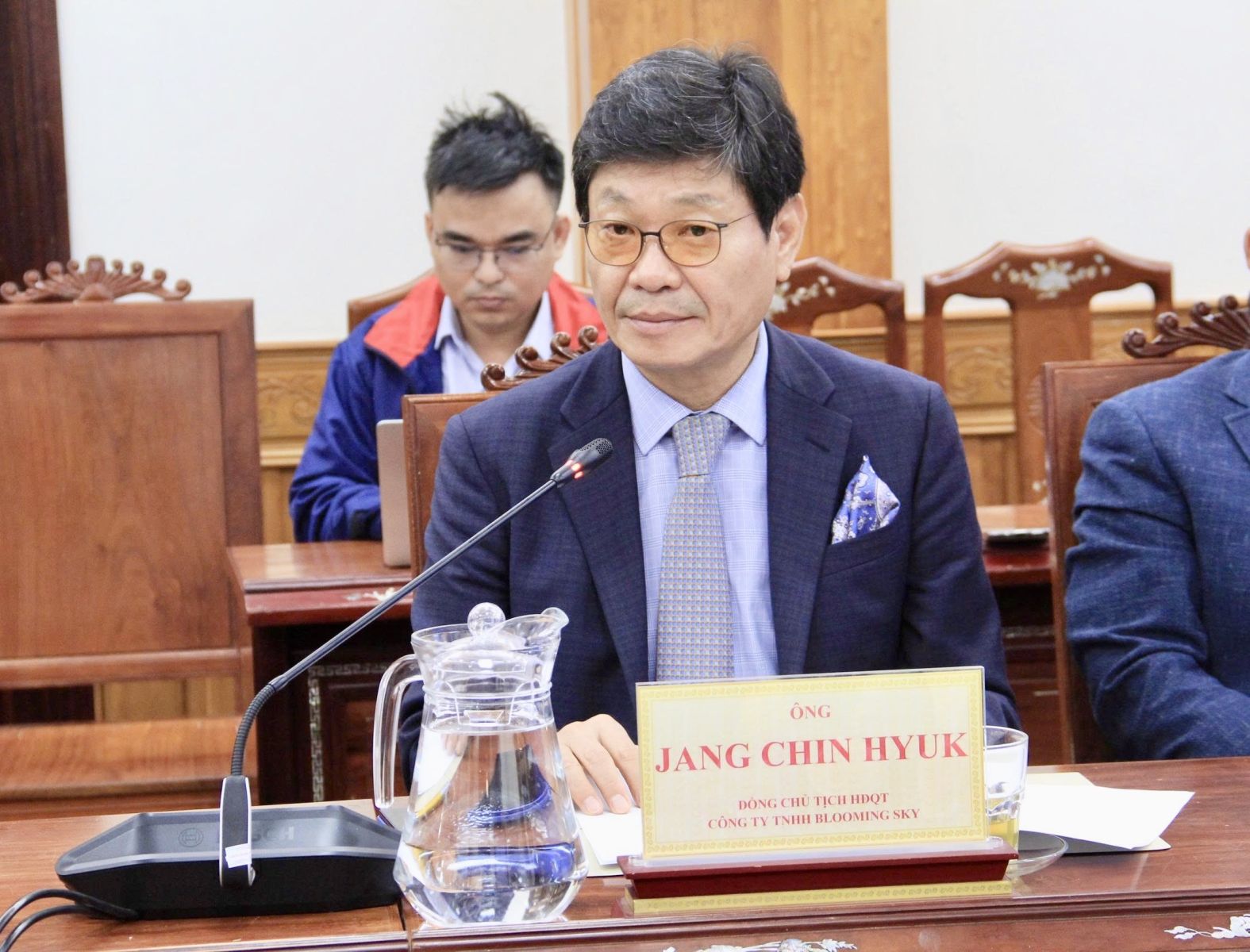 Để dự án sớm được triển khai và đạt được hiệu quả đầu tư, ông Jang Chin Hyuk - Đồng Chủ tịch HĐQT Công ty Blooming Sky đề nghị UBND tỉnh Gia Lai xem xét áp dụng mức ưu đãi về giá thuê đất tạo điều kiện cho nhà đầu tư trong tính toán tài chính và nhanh chóng hoàn thiện các thủ tục đầu tư để rút ngắn thời gian đưa dự án vào triển khai thực tế.