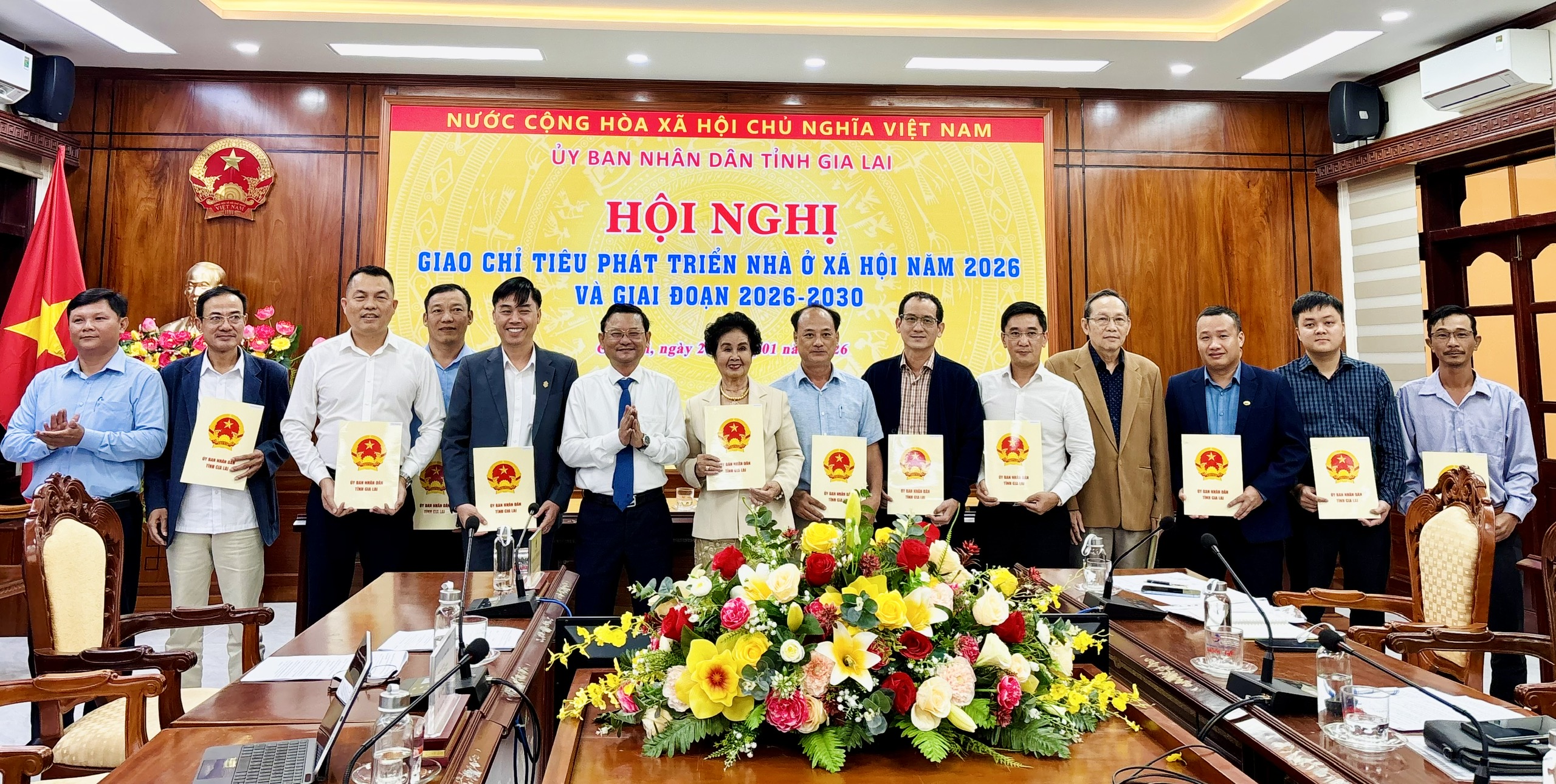 Dịp này, Phó Chủ tịch UBND tỉnh Nguyễn Tự Công Hoàng đã trao Quyết định giao chỉ tiêu số lượng căn hộ NOXH hoàn thành năm 2026 và giai đoạn 2026-2030 trên địa bàn tỉnh Gia Lai cho các chủ đầu tư.