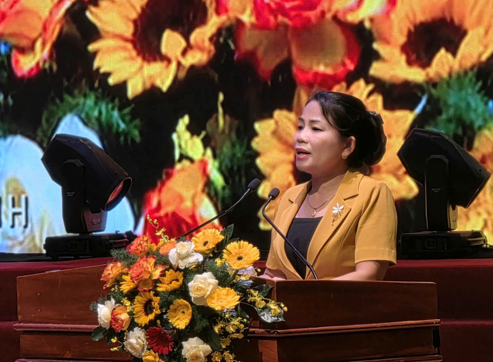 Trưởng ban Ban Tuyên giáo và Dân vận Tỉnh ủy Nguyễn Thị Phong Vũ phát biểu tại hội nghị.