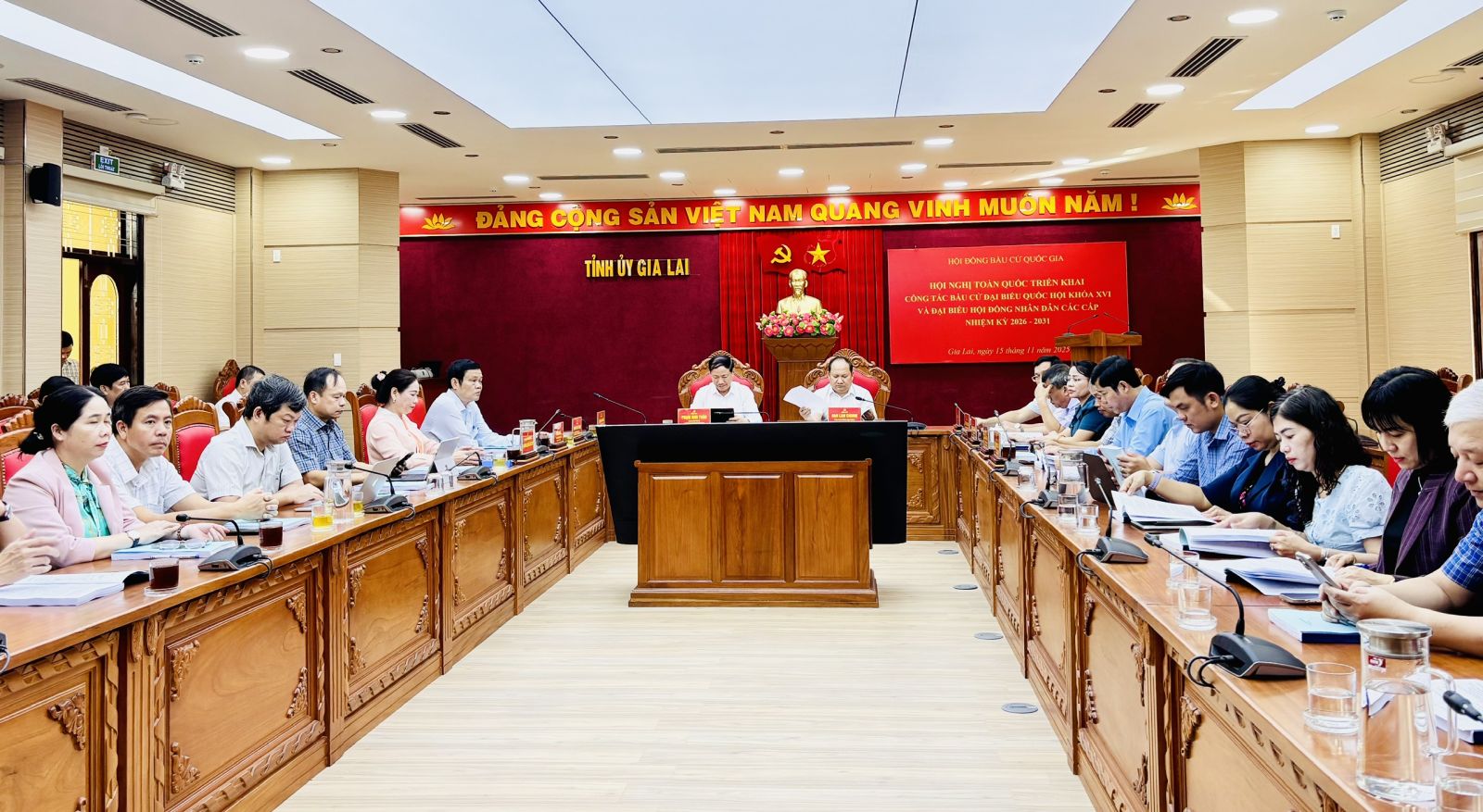 Tại điểm cầu tỉnh Gia Lai có các đồng chí Rah Lan Chung – Phó Bí thư Thường trực Tỉnh uỷ, Chủ tịch HĐND tỉnh; Phạm Anh Tuấn – Phó Bí thư Tỉnh uỷ, Chủ tịch UBND tỉnh. Cùng các thành viên Ban Chỉ đạo công tác bầu cử của tỉnh, Uỷ ban bầu cử tỉnh.