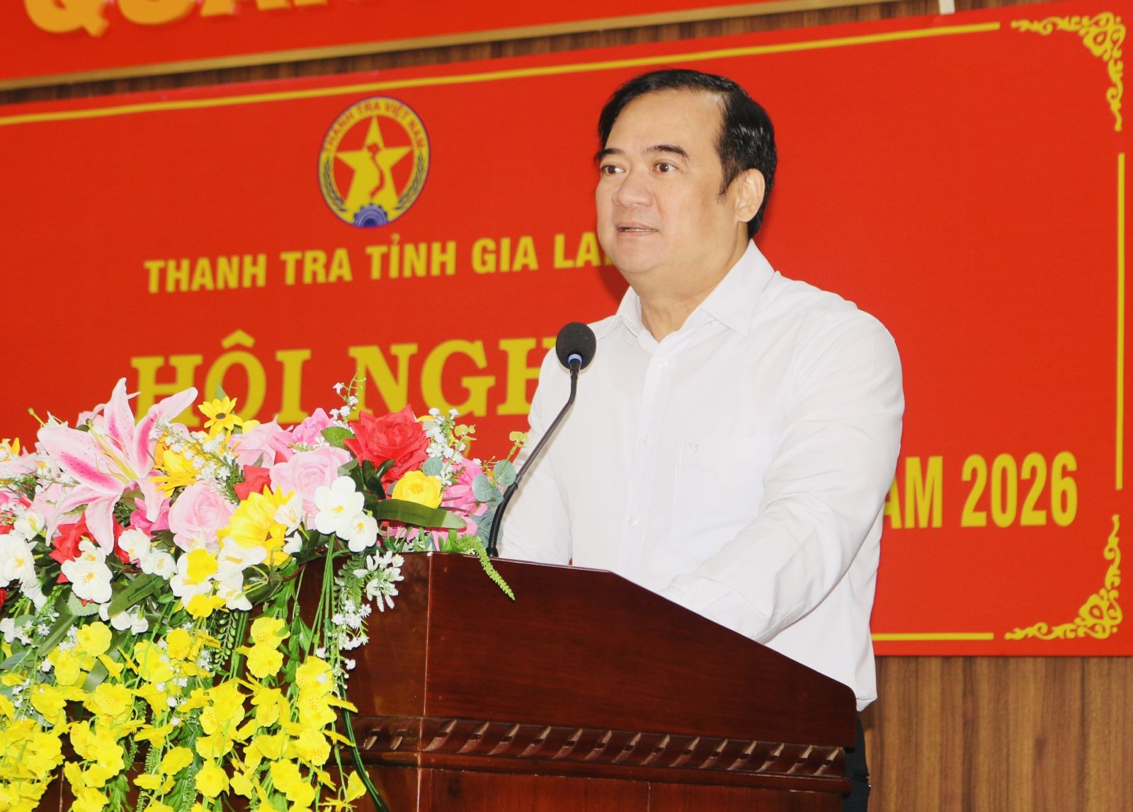 Đồng chí yêu cầu công tác thanh tra cần phát huy tốt tính chủ động, linh hoạt, nhanh nhạy, kịp thời, tập trung có trọng tâm, trọng điểm vào những vấn đề nổi cộm, bức xúc trong công tác quản lý trên các lĩnh vực kinh tế - xã hội và những vấn đề được dư luận quan tâm, trước hết là tập trung triển khai hoàn thành, có hiệu quả các chỉ tiêu, nhiệm vụ phát triển kinh tế-xã hội và Chương trình công tác trọng tâm năm 2026 mà UBND tỉnh đã giao cho cơ quan Thanh tra tỉnh. Tiếp tục phát huy vai trò, chức năng, nhiệm vụ quan trọng của cơ quan thanh tra trong công tác quản lý nhà nước về tiếp công dân, giải quyết khiếu nại, tố cáo của công dân, cũng như trong công tác phòng, chống tham nhũng, lãng phí, tiêu cực nhằm góp phần nâng cao hiệu lực, hiệu quả quản lý hành chính, lành mạnh hóa các quan hệ xã hội, tạo tiền đề thuận lợi để đẩy nhanh phát triển kinh tế - xã hội của tỉnh nhà.