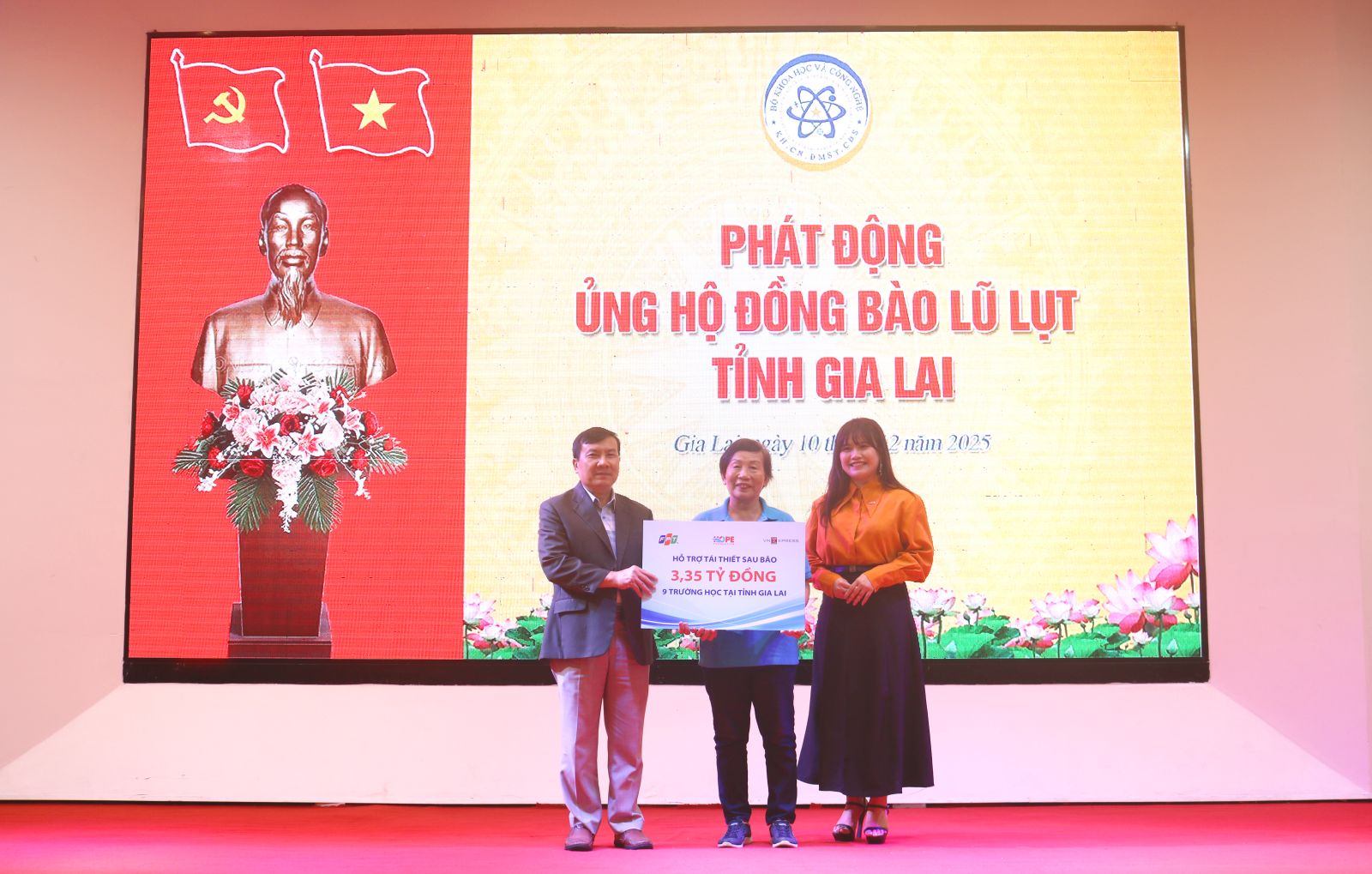 Đại diện Quỹ Hy Vọng (HOPE Foundation), Báo VnExpress, Tập đoàn FPT hỗ trợ cho các trường học bị thiệt hại do bão lũ.