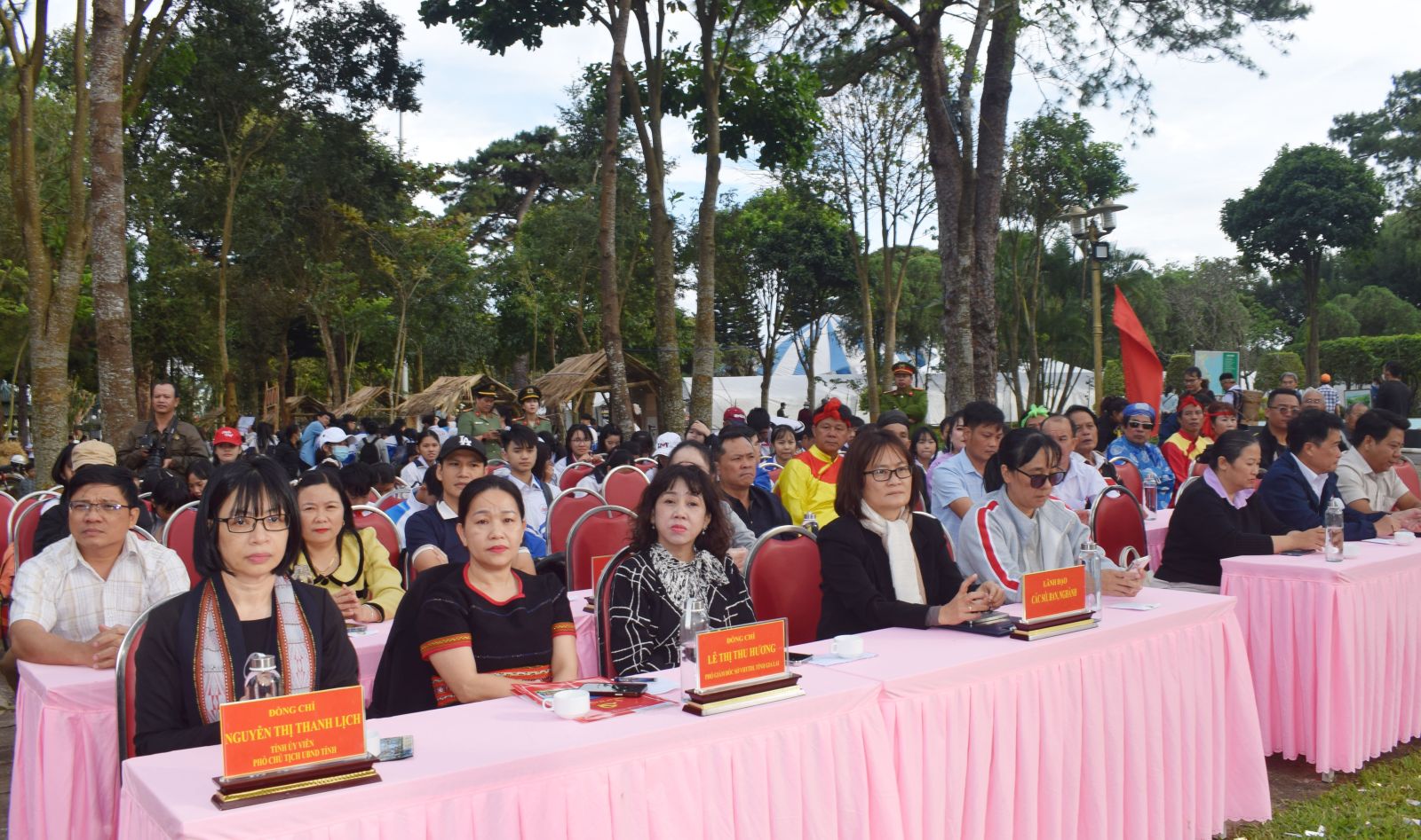 Tham dự lễ khai mạc có đồng chí Nguyễn Thị Thanh Lịch - Tỉnh uỷ viên, Phó Chủ tịch UBND tỉnh; lãnh đạo các Sở, ban, ngành của tỉnh; đại diện lãnh đạo một số xã, phường trên địa bàn tỉnh cùng hơn 700 nghệ nhân, nghệ sĩ, hội viên, các đội nhóm thuộc các câu lạc bộ văn hóa, tiểu thương tham gia Ngày hội Di sản văn hóa các dân tộc tỉnh Gia Lai năm 2025.