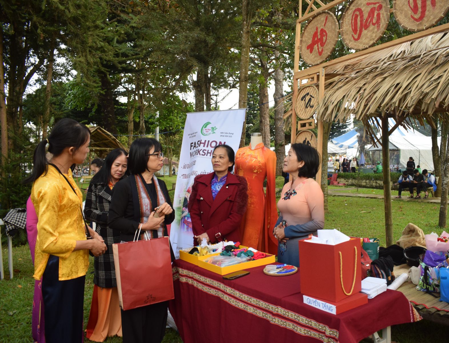 Phó Chủ tịch UBND tỉnh Nguyễn Thị Thanh Lịch tham quan gian hàng áo dài