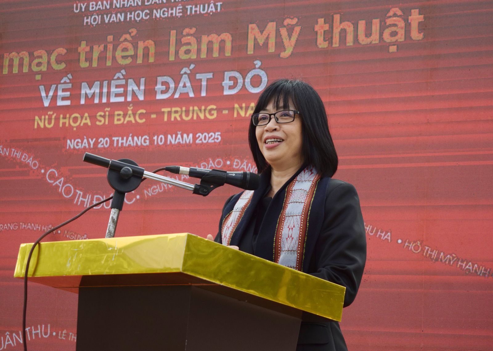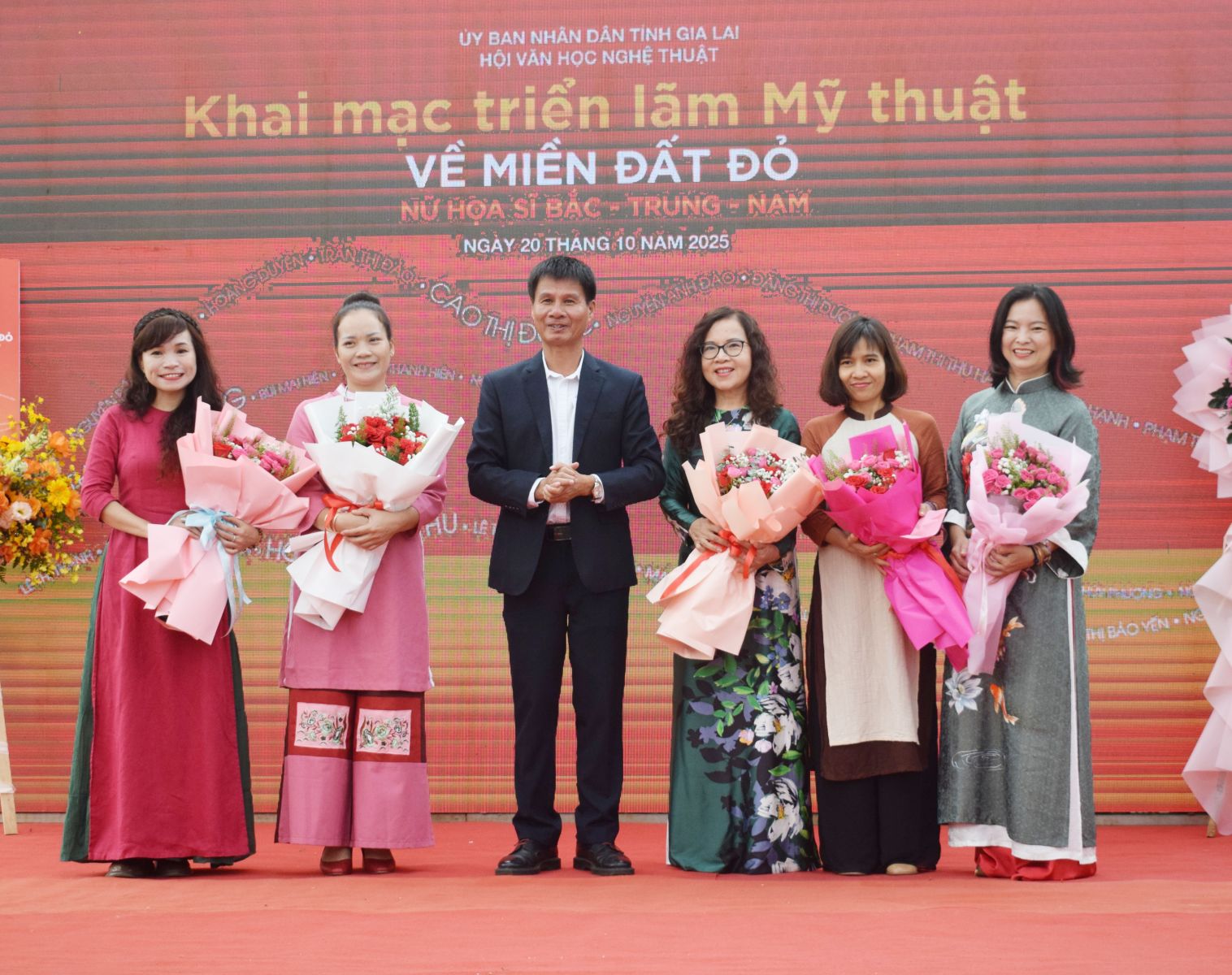 Phát biểu tại lễ khai mạc, nhân dịp kỷ niệm Ngày Phụ nữ Việt Nam 20/10, đồng chí Nguyễn Thị Thanh Lịch gửi lời chúc mừng tốt đẹp nhất đến các hoạ sĩ nữ; đồng thời nhấn mạnh: Hôm nay không chỉ là triển lãm như mọi triển lãm khác mà hơn hết là sự hội tụ của các nữ họa sĩ 3 miền đất nước về Gia Lai. Đồng chí Phó Chủ tịch UBND tỉnh mong muốn qua triển lãm mỹ thuật “Về miền đất đỏ” không chỉ là giao lưu, học hỏi, trao đổi về mặt nghề nghiệp trong giới nghệ sĩ mà qua các nghệ sĩ sẽ trở thành niềm tin, hỗ trợ cho các nghệ sĩ trẻ ở Gia Lai được tiếp xúc với nghệ thuật. Đồng chí Phó Chủ tịch UBND tỉnh cũng ghi nhận và đánh giá cao Hội Văn học Nghệ thuật tỉnh Gia Lai thời gian qua đã để lại các dấu ấn rất đặc biệt, những sản phẩm đóng góp cho xã hội, làm đẹp hơn cho ngành văn học nghệ thuật và làm đẹp hơn cho tỉnh Gia Lai.
