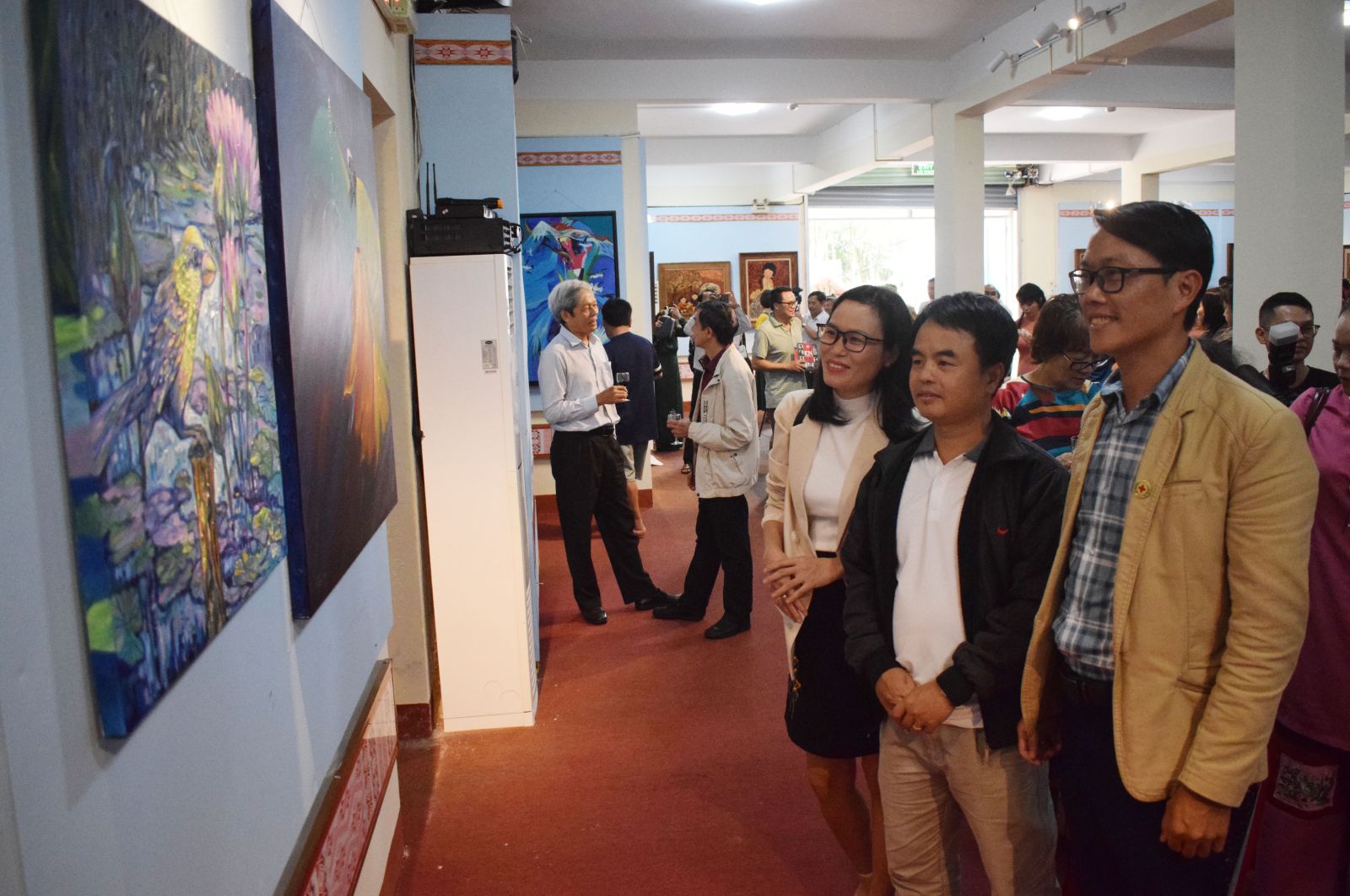 Các đại biểu thưởng lãm tranh tại phòng trưng bày chuyên đề Bảo tàng Pleiku