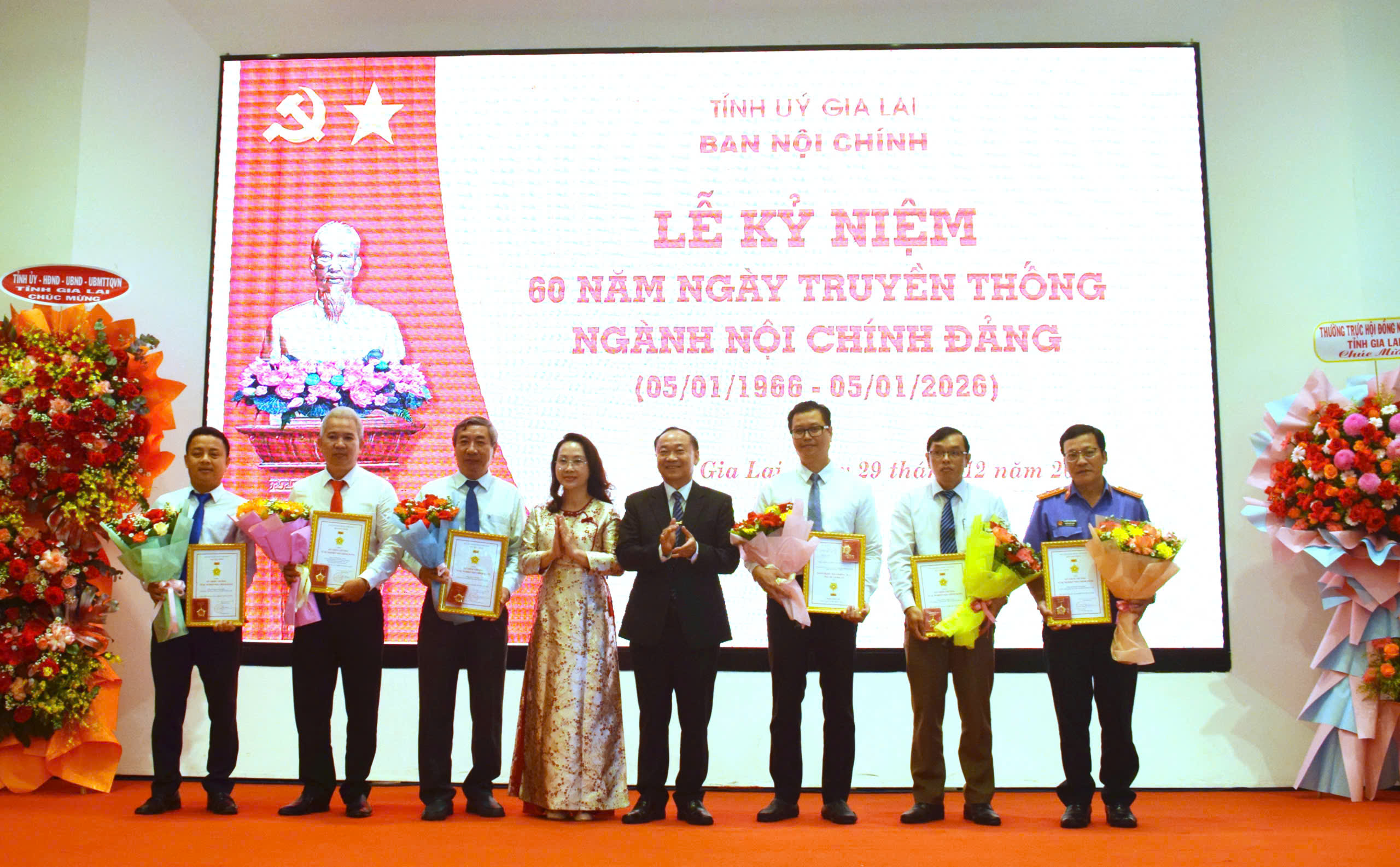 Dịp này, nhằm ghi nhận quá trình tham gia công tác và những đóng góp quan trọng của cán bộ, công chức tỉnh qua các thời kỳ cho sự nghiệp xây dựng và phát triển của ngành Nội chính Đảng, Ban Nội chính Trung ương quyết định tặng Kỷ niệm chương “Vì sự nghiệp Nội chính Đảng” cho 06 cá nhân thuộc tỉnh Gia Lai.
