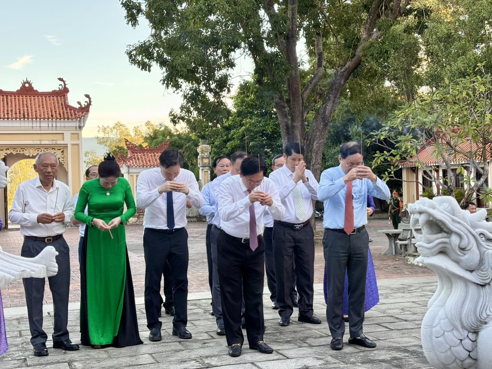 Tại Di tích lịch sử Gò Lăng, các đồng chí lãnh đạo tỉnh đã dâng hương tưởng nhớ công lao to lớn của thân phụ, thân mẫu Tây Sơn Tam kiệt. Tiếp đó, các đồng chí lãnh đạo tỉnh đã thành kính dâng hương tại Lăng mộ Hiển tổ khảo Tây Sơn Tam Kiệt./.