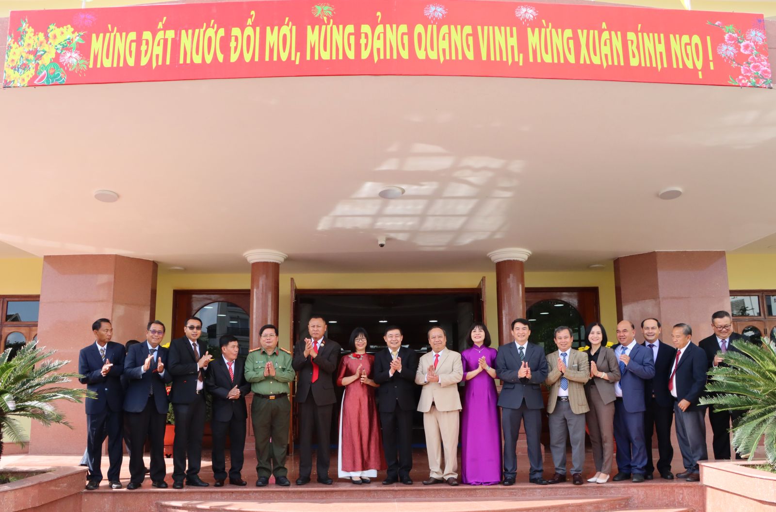Đoàn đại biểu hai tỉnh Gia Lai và Salavan chụp ảnh lưu niệm.