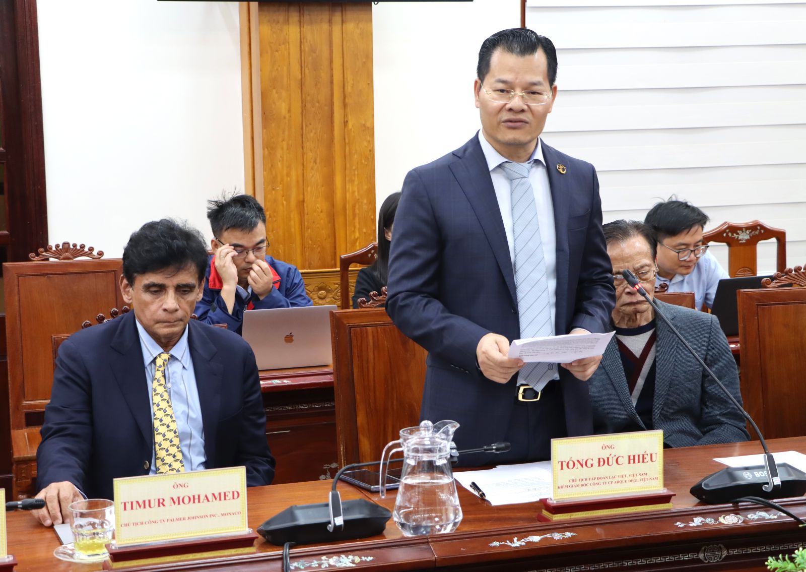 Ông Tống Đức Hiếu - Giám đốc Công ty Cổ phần ARQUE DEGI (giữa) thông tin các dự án sẽ triển khai tại tỉnh Gia Lai.