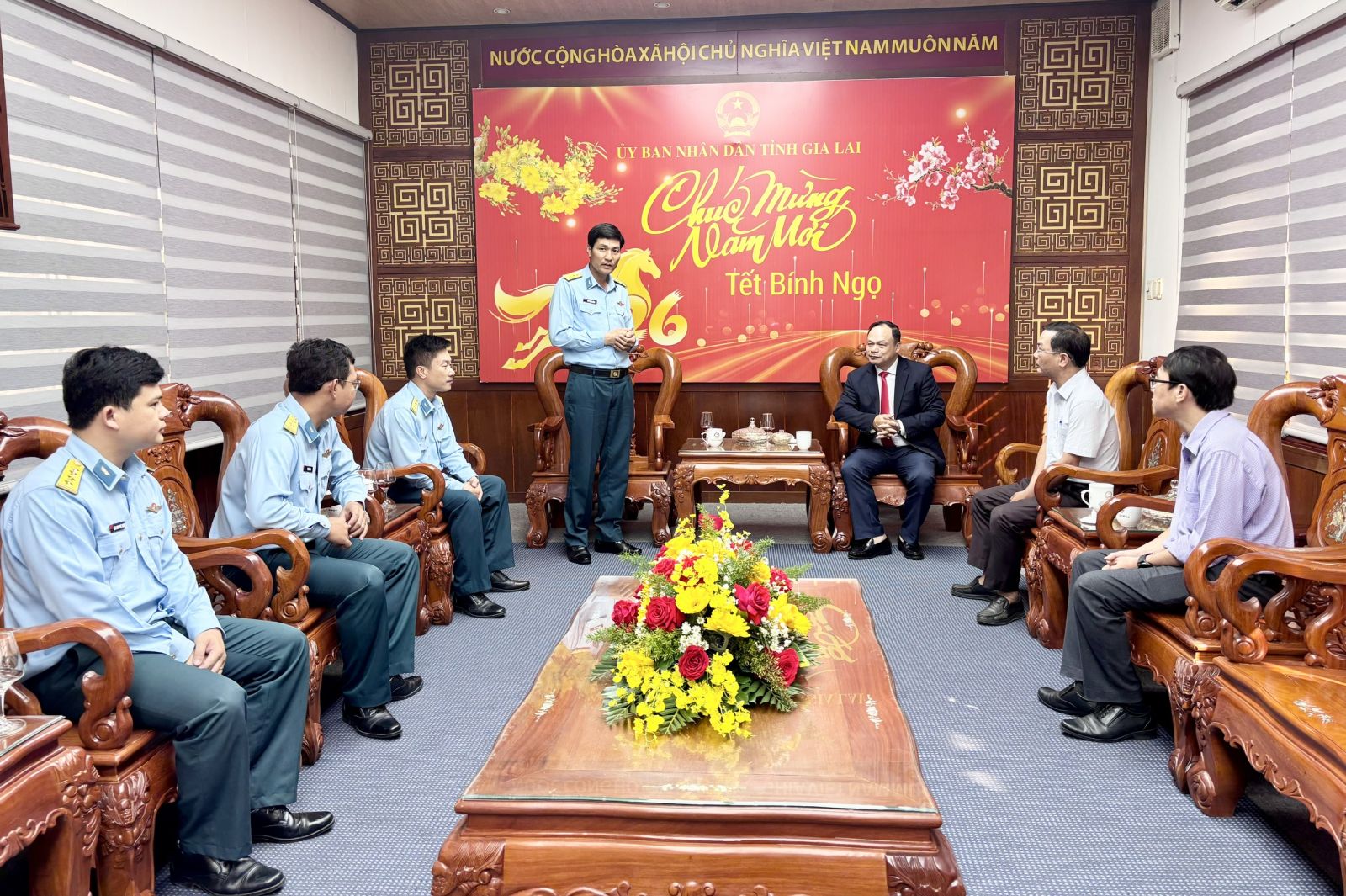 Tại buổi tiếp, Phó Chủ tịch UBND tỉnh Dương Mah Tiệp bày tỏ cảm ơn Đoàn công tác đã đến thăm, chúc Tết tỉnh Gia Lai nhân dịp Tết Nguyên đán Bính Ngọ. Đồng chí khẳng định tỉnh luôn trân trọng và đánh giá cao sự phối hợp, hỗ trợ hiệu quả của Trung đoàn Không quân 925 trong thời gian qua, góp phần giữ vững ổn định chính trị, trật tự an toàn xã hội trên địa bàn. Nhân dịp năm mới, Phó Chủ tịch UBND tỉnh gửi lời chúc mừng tới toàn thể cán bộ, chiến sĩ Trung đoàn Không quân 925, chúc đơn vị tiếp tục đoàn kết, hoàn thành xuất sắc các nhiệm vụ được giao.