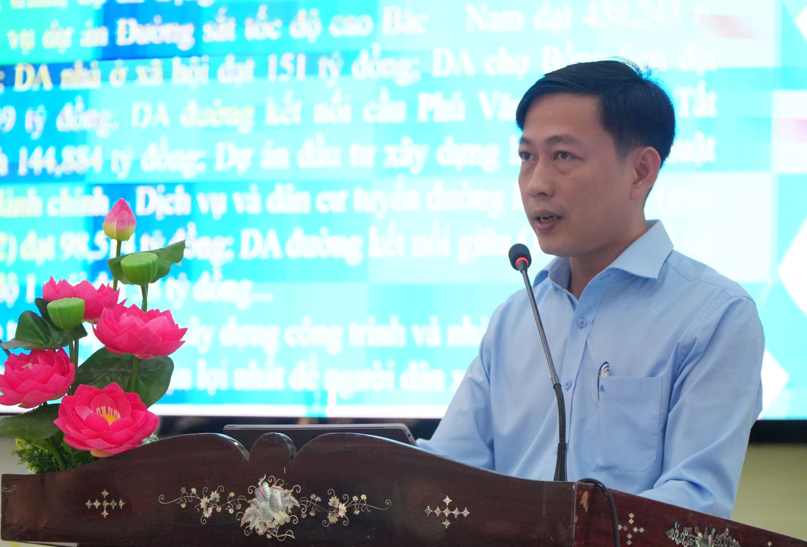 Tại buổi làm việc, các đại biểu đã tập trung trao đổi, làm rõ những tồn tại, hạn chế cần khắc phục như: nợ đọng xây dựng cơ bản còn lớn; hệ thống cấp nước sạch tập trung chưa được đầu tư đồng bộ; tiến độ giải phóng mặt bằng một số công trình còn chậm; nguồn nhân lực còn thiếu; tỷ lệ người dân nộp hồ sơ trực tuyến chưa cao...