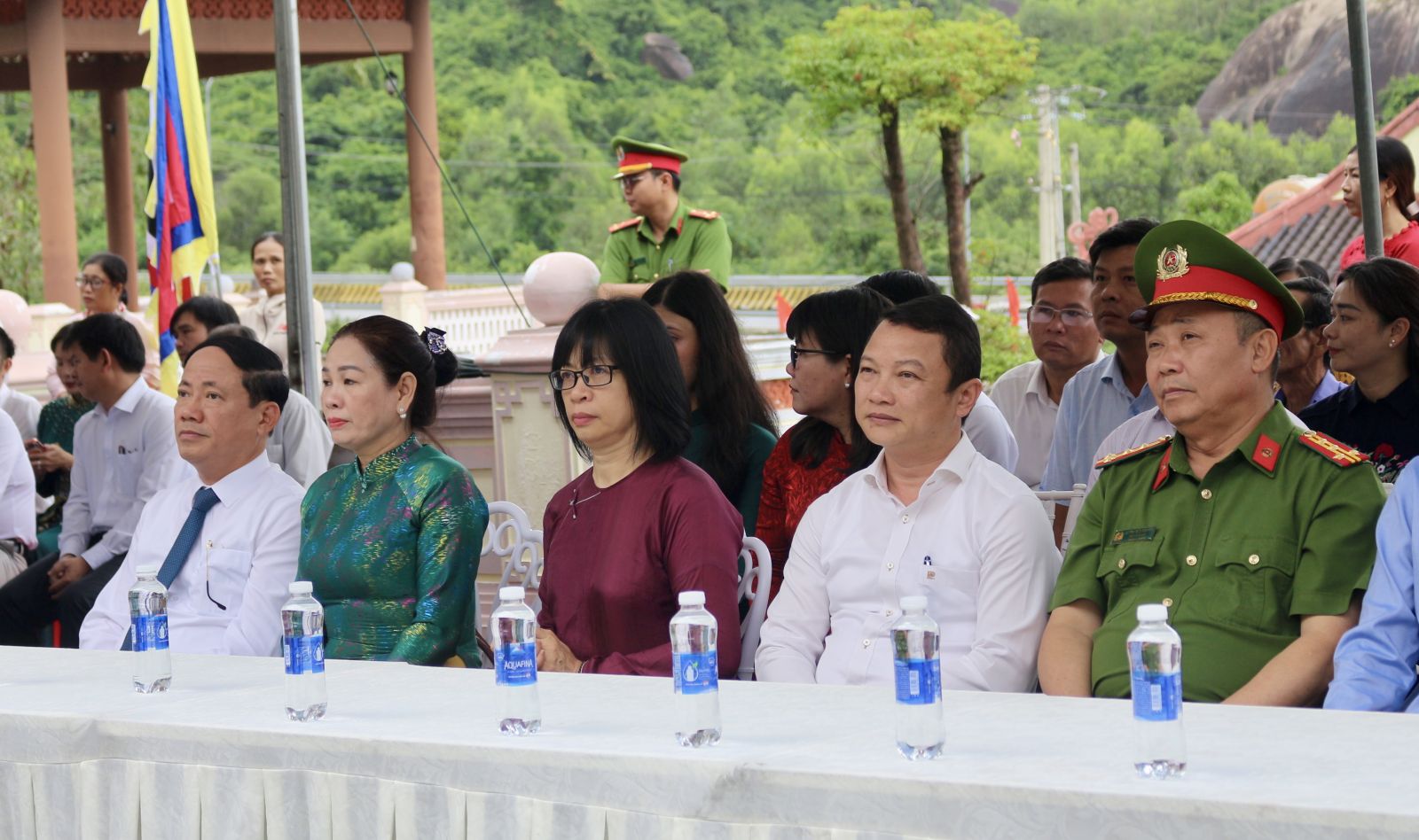 Lãnh đạo tỉnh và lãnh đạo xã Cát Tiến cùng Ban Nghi lễ đọc chúc văn ôn lại cuộc đời và công lao của Anh hùng Nguyễn Trung Trực