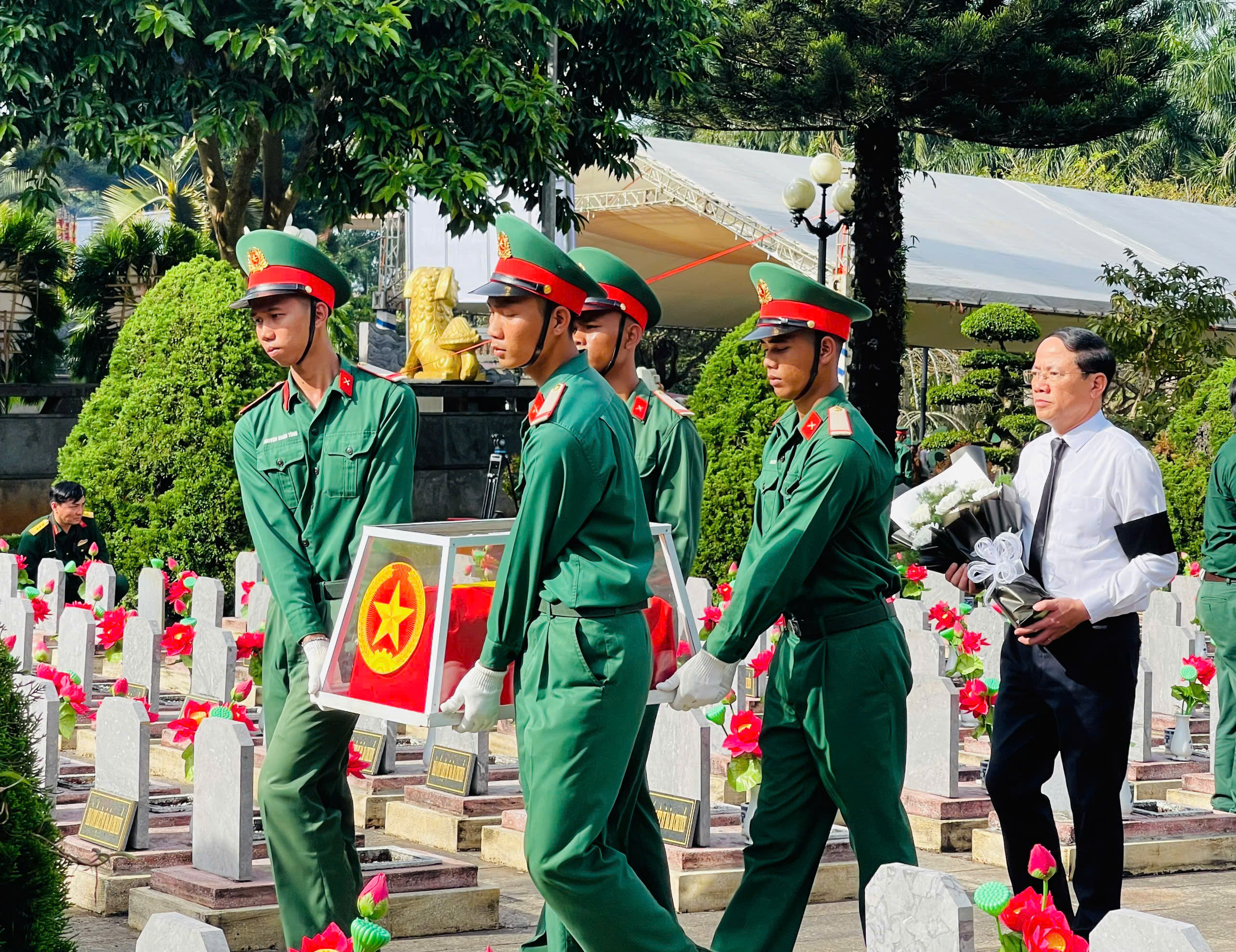 Chủ tịch UBND tỉnh Phạm Anh Tuấn thực hiện nghi thức di chuyển hài cốt liệt sĩ đến nơi an táng