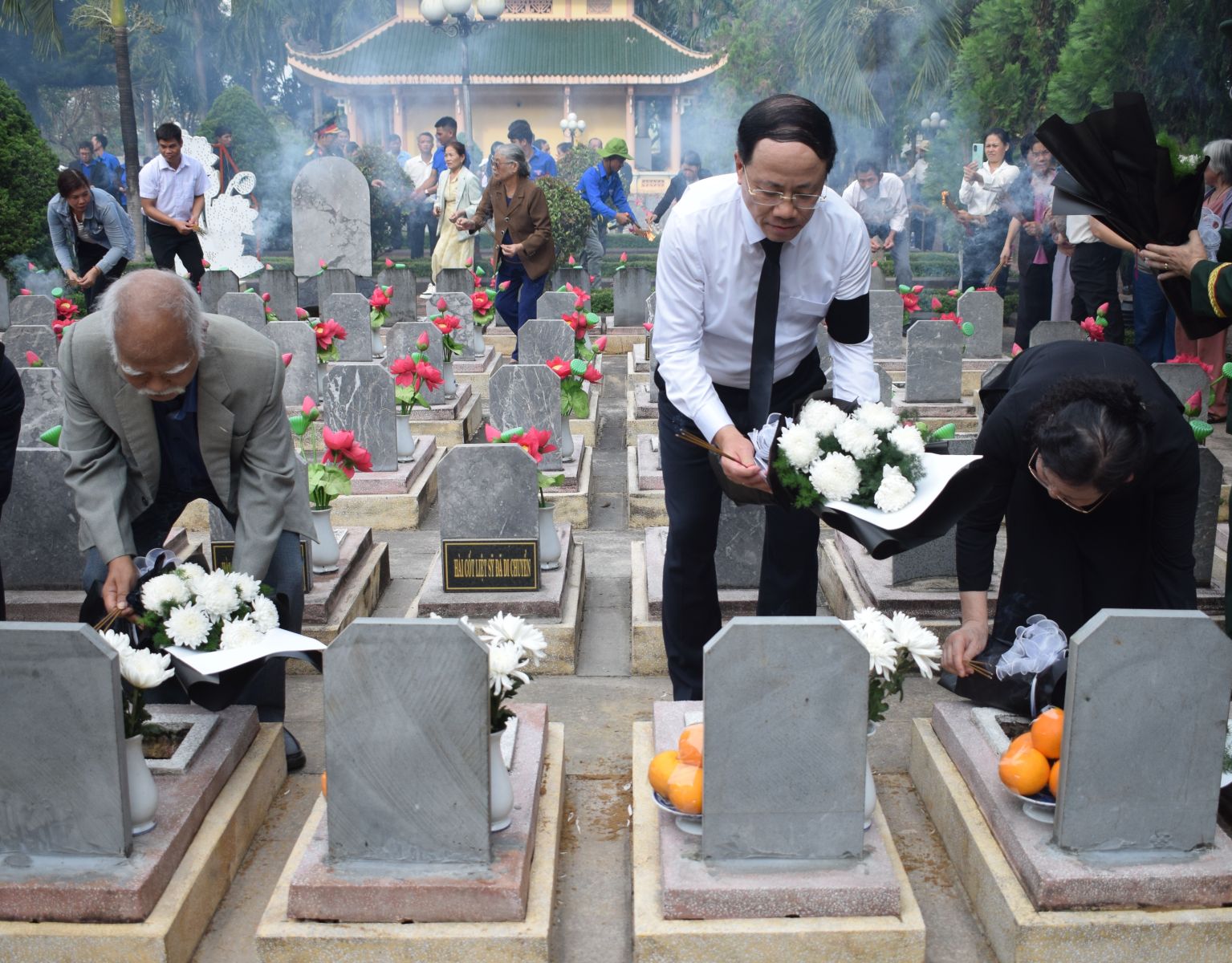 Các đại biểu dâng hoa và thắp hương phần mộ các liệt sĩ