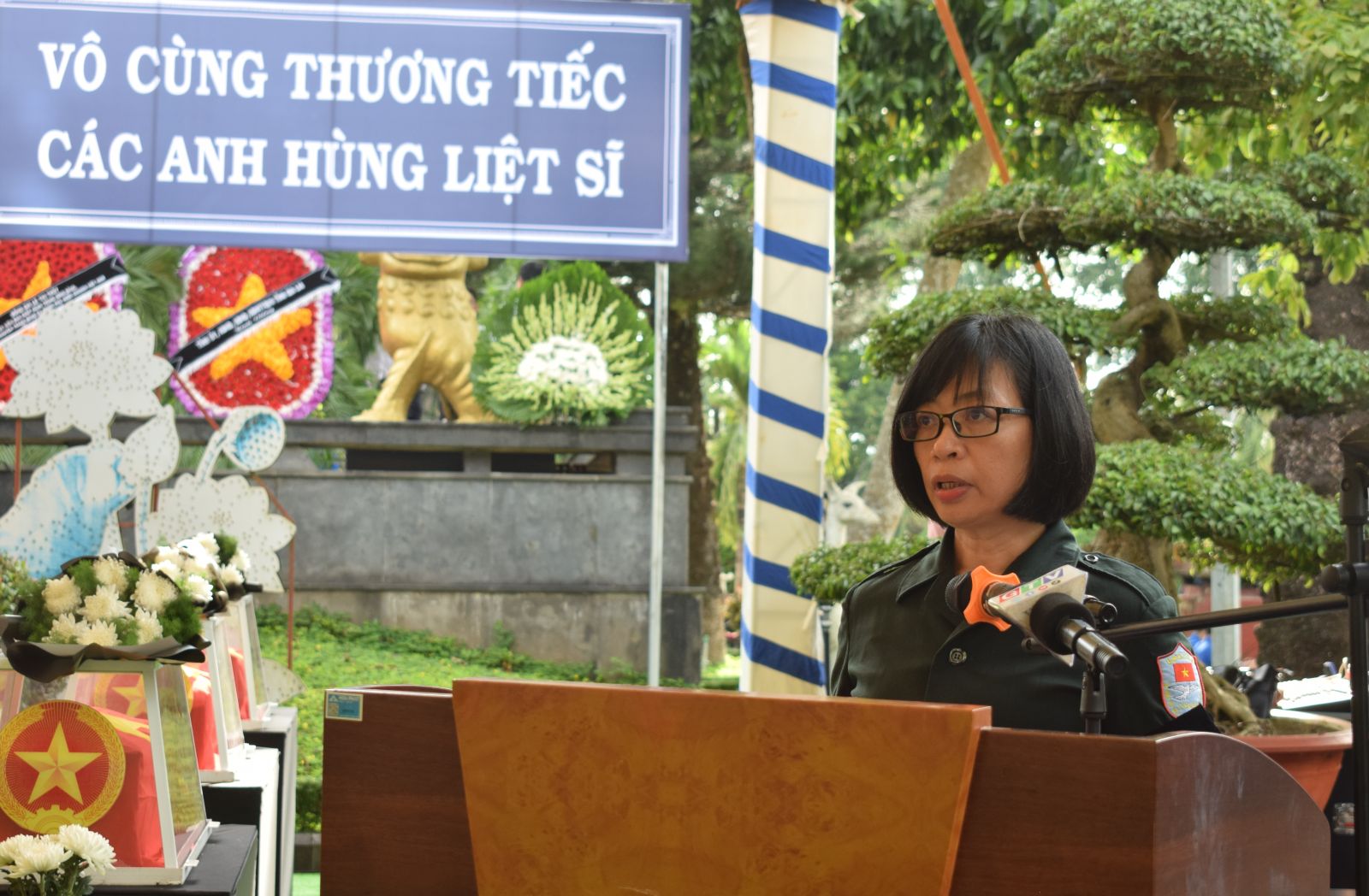 Phó Chủ tịch UBND tỉnh Nguyễn Thị Thanh Lịch đọc điếu văn tại buổi lễ