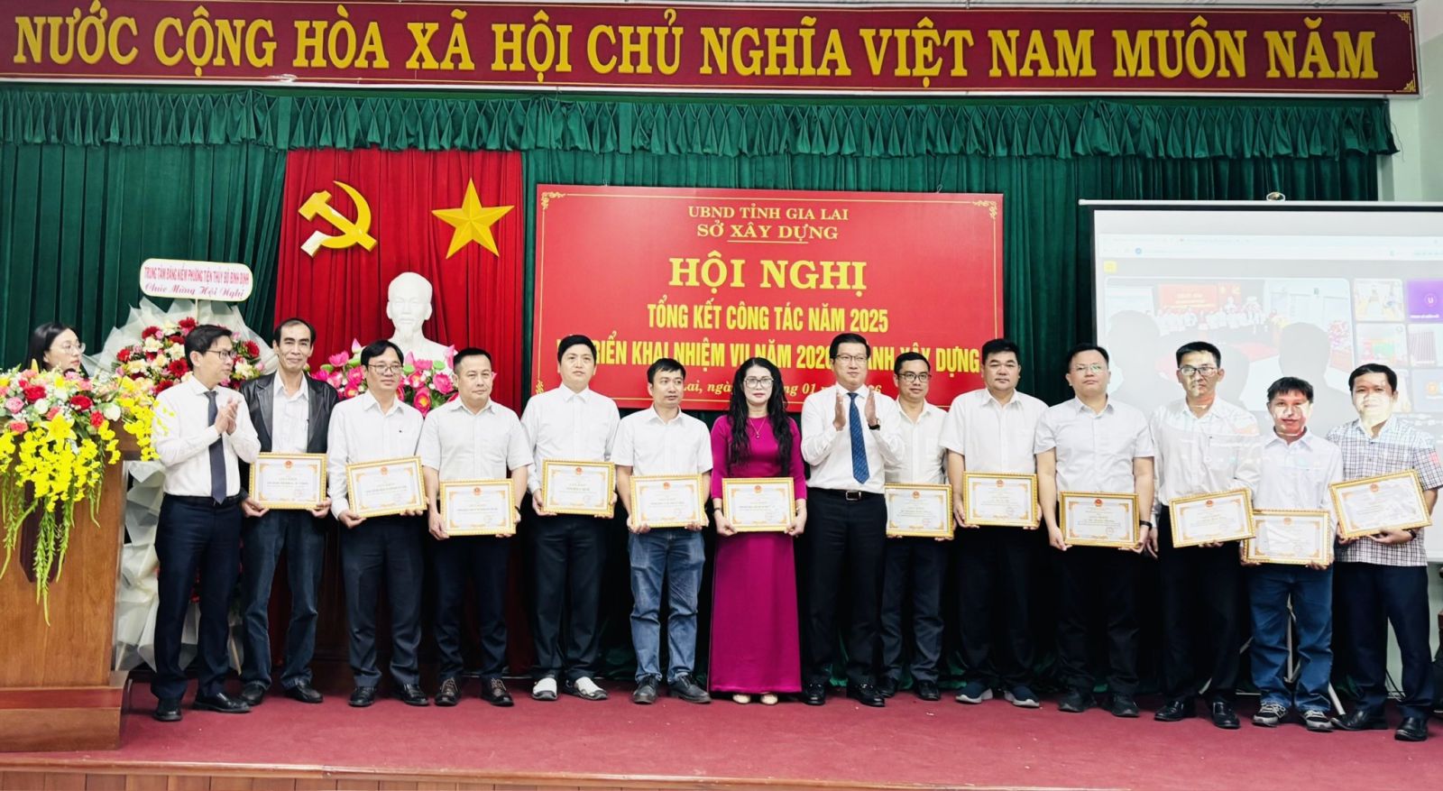 Dịp này, Chủ tịch UBND tỉnh đã tặng Bằng khen cho 01 tập thể thuộc Sở Xây dựng vì đã có thành tích xuất sắc trong công tác phổ biến, giáo dục pháp luật; hòa giải ở cơ sở; xây dựng cấp xã đạt chuẩn tiếp cận pháp luật giai đoạn 2023-2025. Giám đốc Sở Xây dựng đã tặng Giấy khen cho các tập thể và cá nhân đã có thành tích trong thực hiện nhiệm vụ năm 2025.