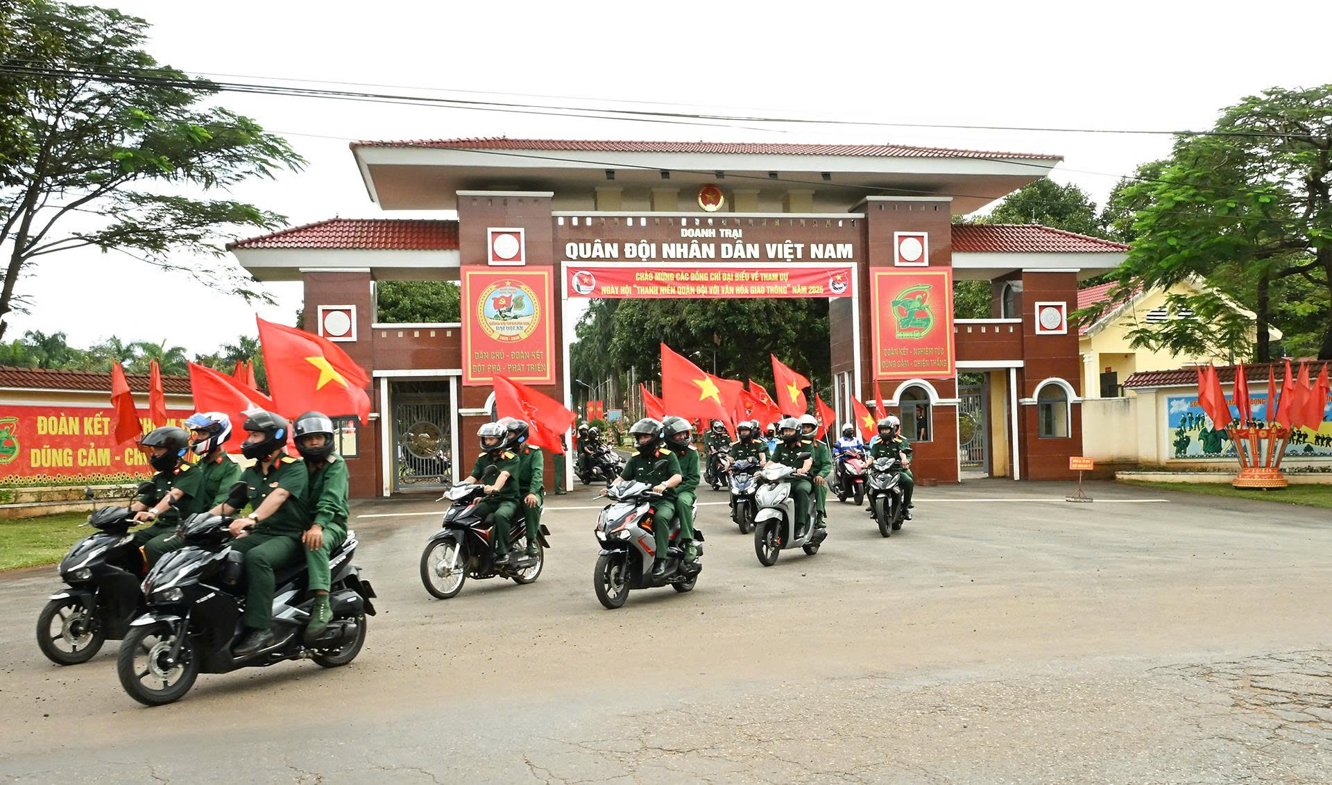 Đồng thời, phát huy vai trò xung kích của đoàn viên, thanh niên trong học tập, rèn luyện, chấp hành nghiêm pháp luật của Nhà nước, kỷ luật cùa Quân đội; khi tham gia giao thông cần thể hiện tác phong quân nhân mẫu mực, ứng xử có văn hóa trong mọi tình huống giao thông.