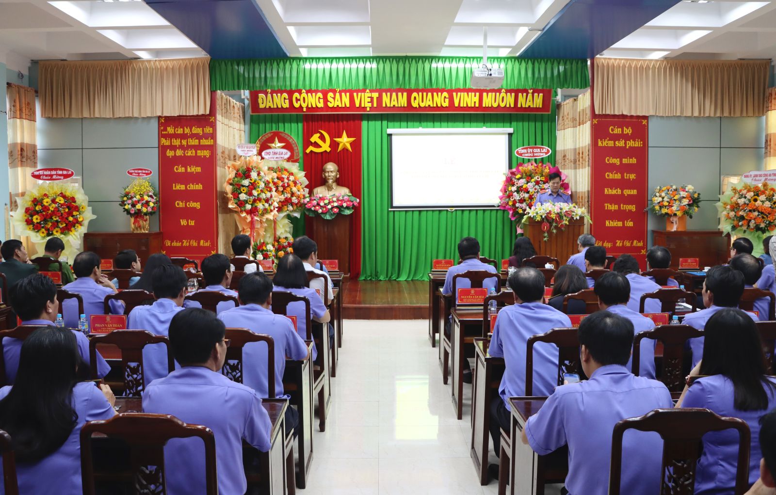 Lãnh đạo Viện kiểm sát nhân dân tối cao và lãnh đạo tỉnh tặng hoa chúc mừng đồng chí Nguyễn Quốc Doanh.