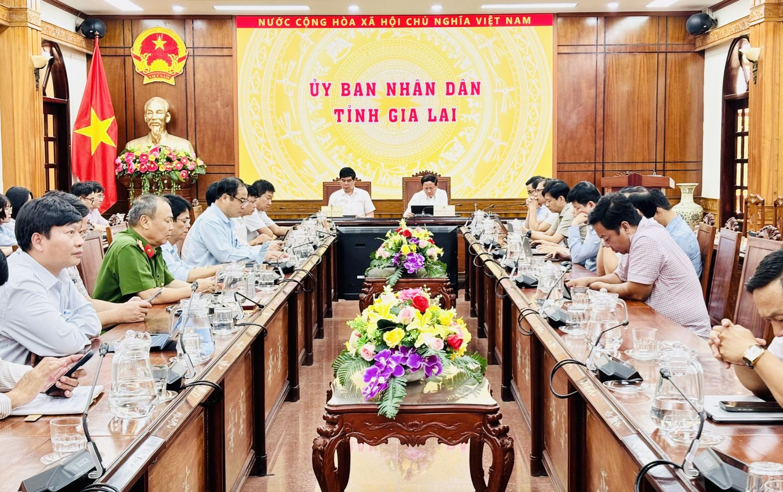 Dự phiên họp tại điểm cầu tỉnh Gia Lai có các đồng chí: Phạm Anh Tuấn – Chủ tịch UBND tỉnh, Trưởng Ban Chỉ đạo của UBND tỉnh về phát triển khoa học, công nghệ, đổi mới sáng tạo, cải cách hành chính, chuyển đổi số và Đề án 06; Lâm Hải Giang – Phó Chủ tịch UBND tỉnh, Phó Trưởng ban Thường trực Ban Chỉ đạo; các đồng chí Phó Trưởng ban và Ủy viên Ban Chỉ đạo của UBND tỉnh; cùng các cơ quan, đơn vị liên quan.