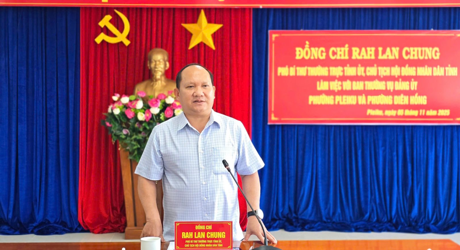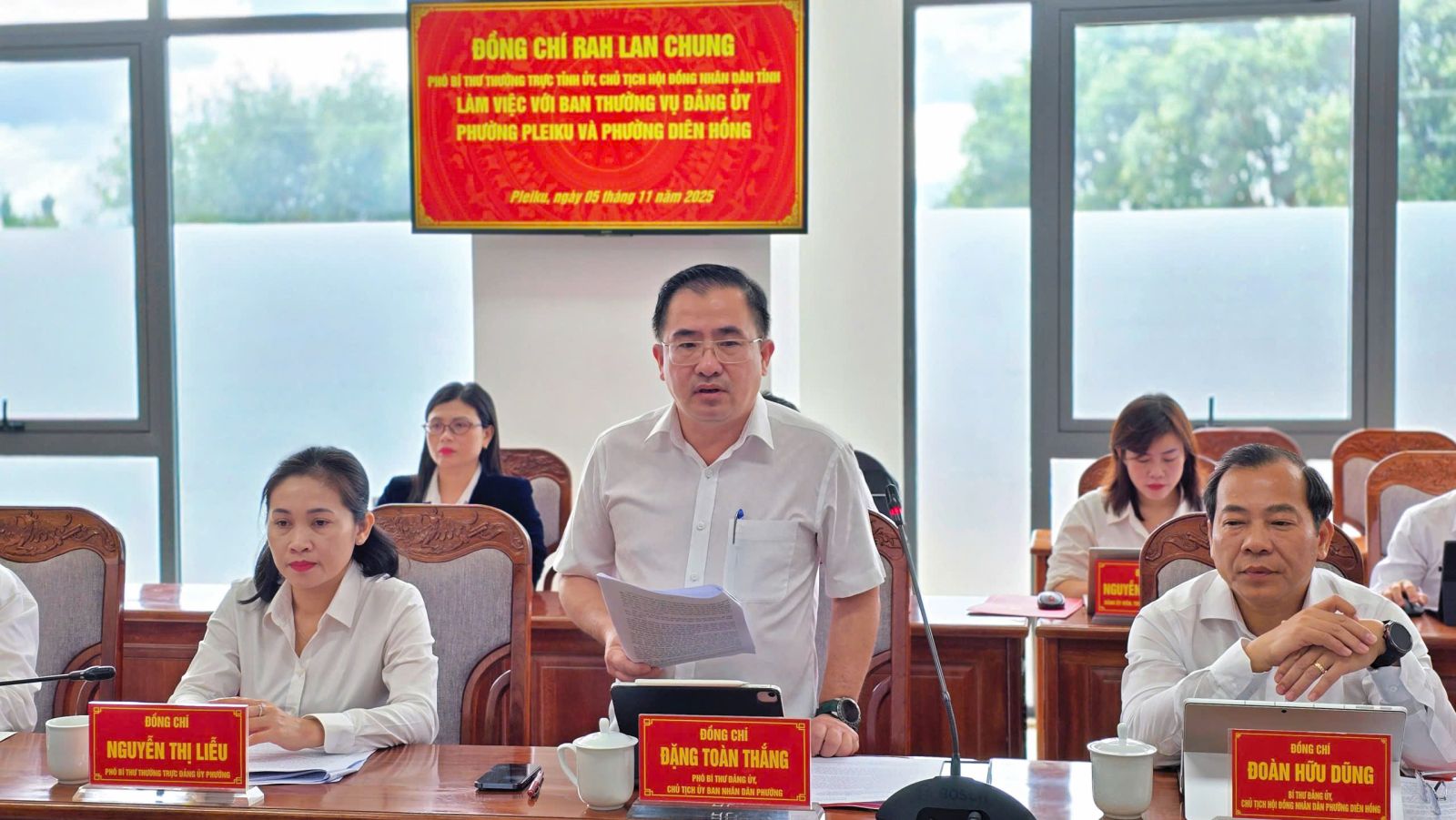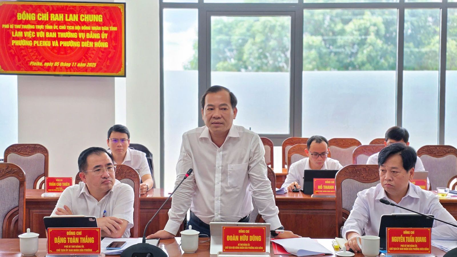 Phát biểu tại buổi làm việc, Phó Chủ tịch UBND tỉnh Nguyễn Hữu Quế đánh giá: Sau khi sáp nhập, phường Pleiku và phường Diên Hồng có nhiều điều kiện thuận lợi để phát triển kinh tế - xã hội. Đồng chí đề nghị hai phường đổi mới toàn diện tư duy, phương thức lãnh đạo, chỉ đạo và điều hành, nhằm phát huy tiềm năng, lợi thế của địa phương.