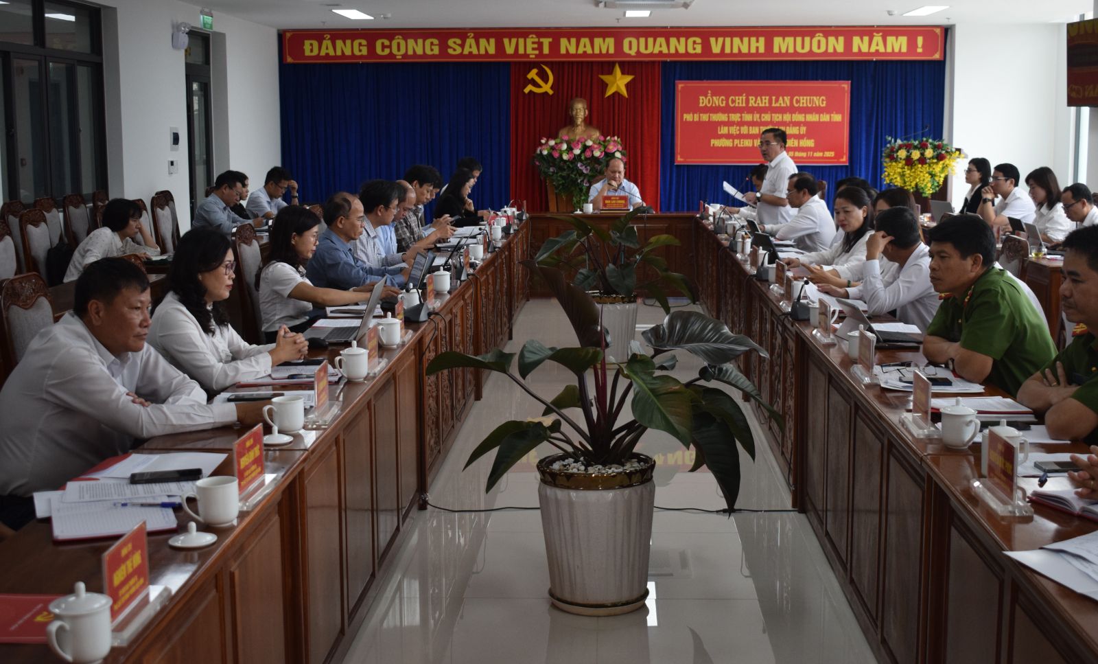 Phát biểu kết luận buổi làm việc, Phó Bí thư Thường trực Tỉnh ủy, Chủ tịch HĐND tỉnh Rah Lan Chung đánh giá cao sự nỗ lực cố gắng của các địa phương trong triển khai nhiệm vụ thời gian qua.