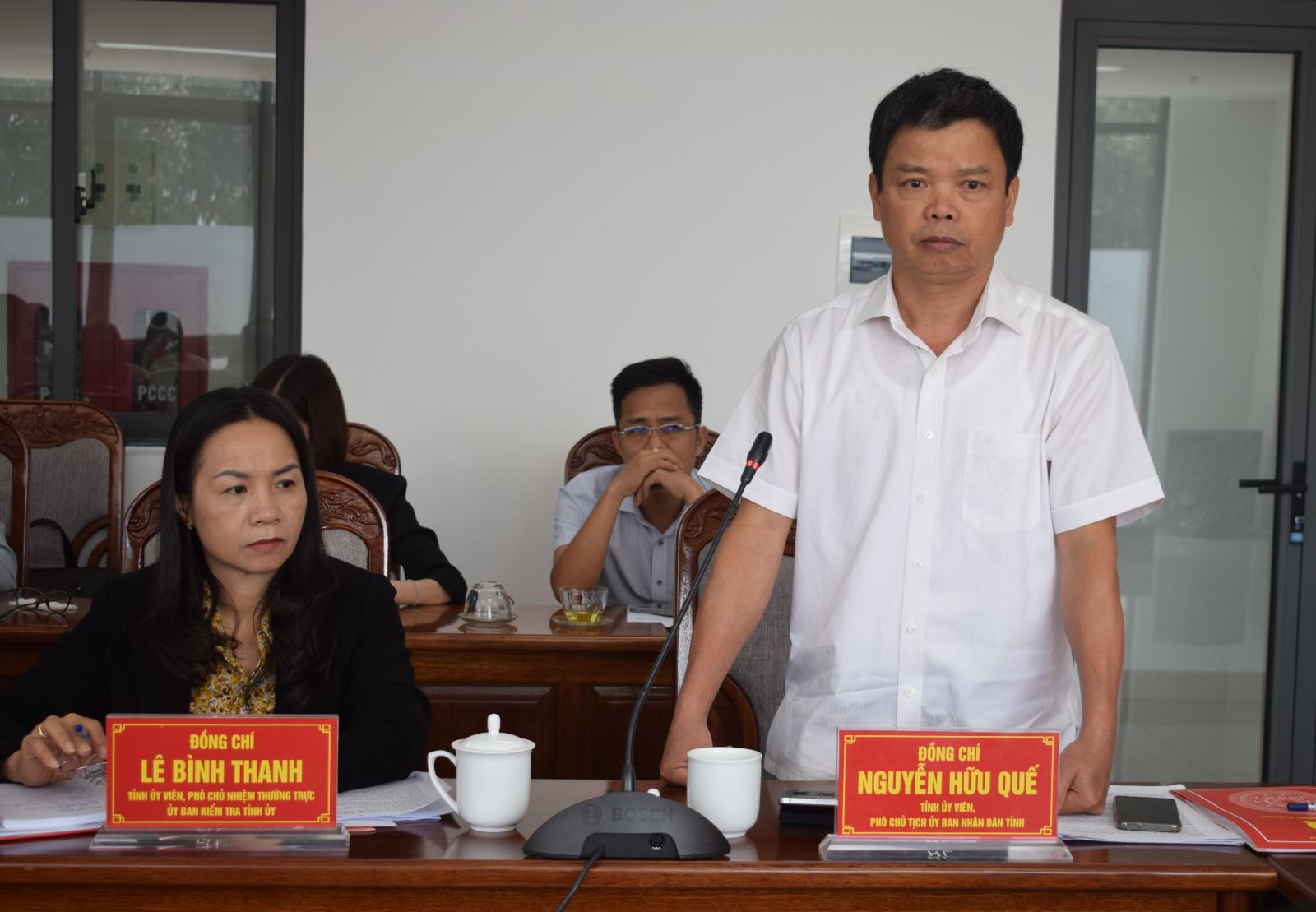 Phó Chủ tịch UBND tỉnh Nguyễn Hữu Quế phát biểu tại buổi làm việc