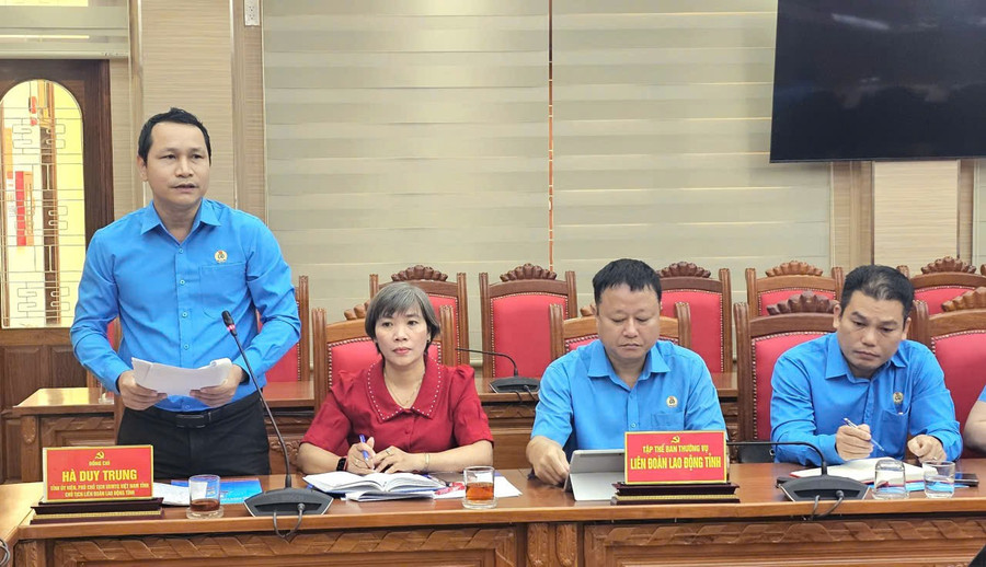 Chủ tịch LĐLĐ tỉnh Hà Duy Trung báo cáo tại buổi làm việc. Ảnh: Đức Hải