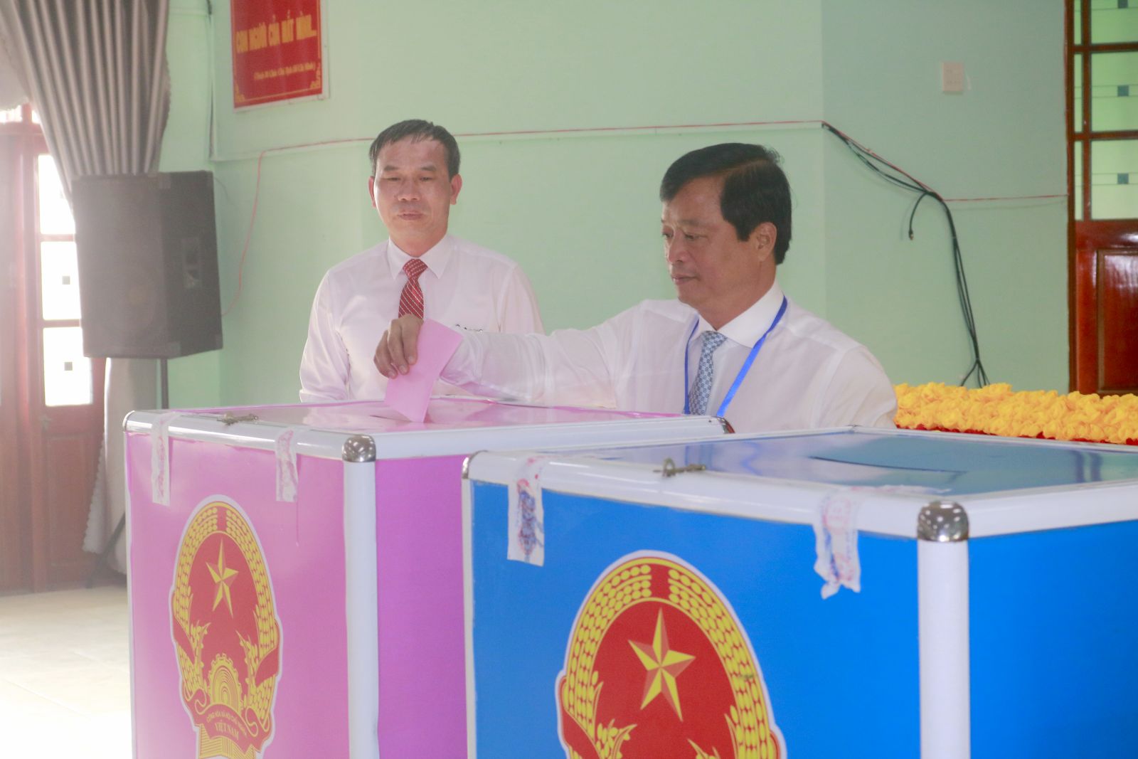Ngay sau lễ khai mạc, các đồng chí đại biểu đã cùng 2.976 cử tri của 2 thôn Thiết Trụ và Vân Sơn bỏ phiếu bầu cử để thực hiện quyền và nghĩa vụ công dân.