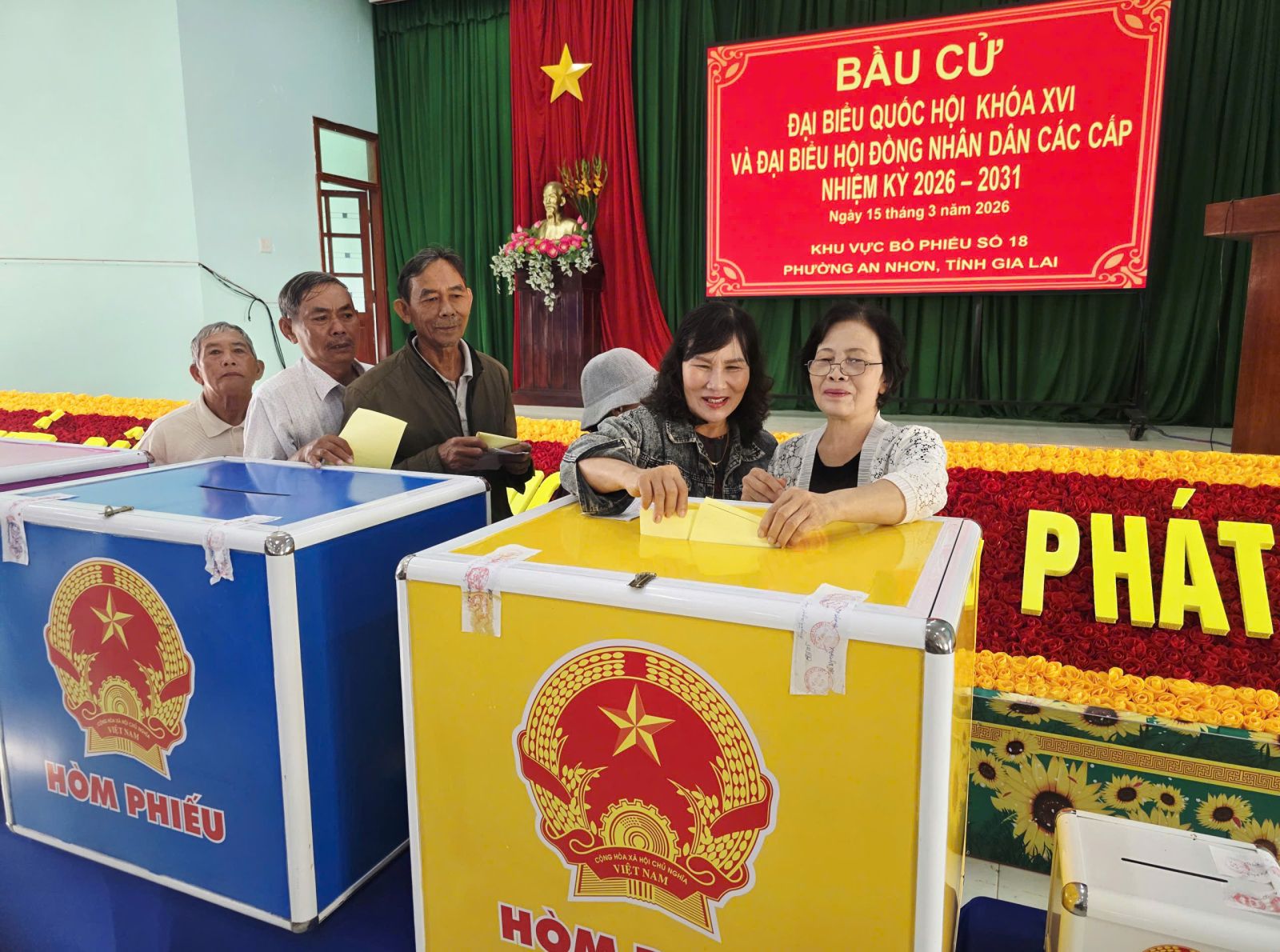 Cử tri phấn khởi thực hiện quyền và nghĩa vụ công dân.